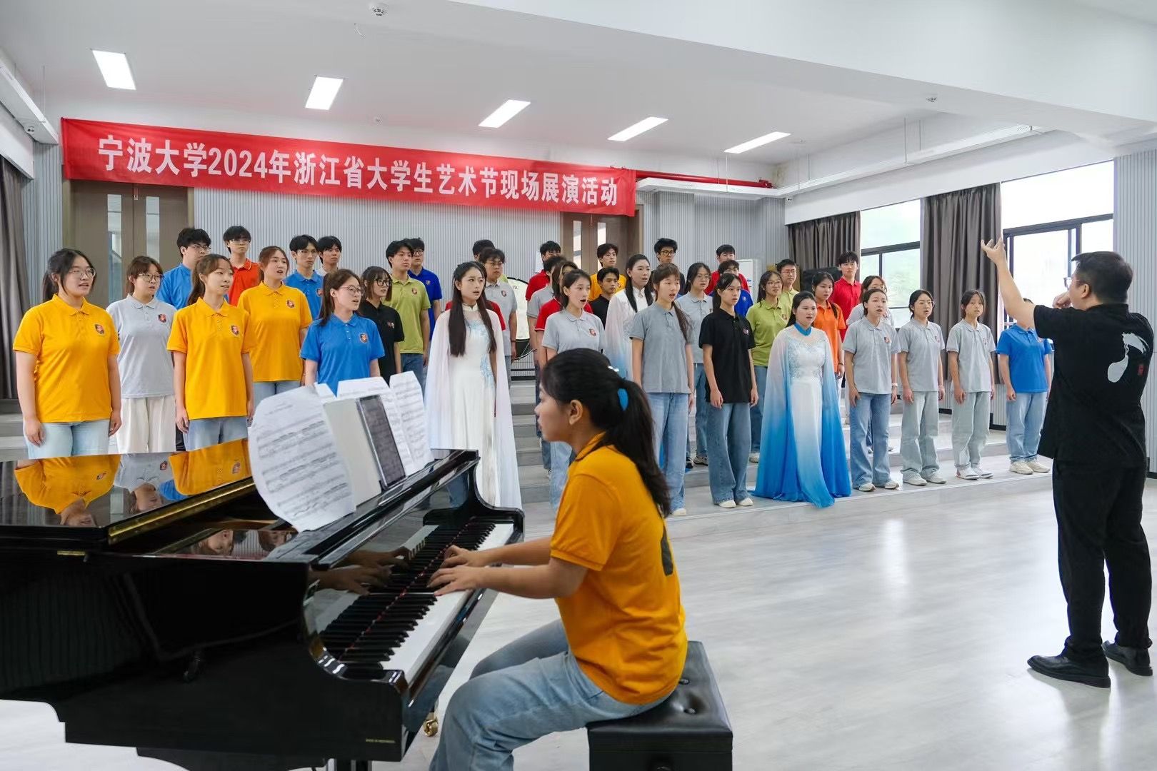 慰问活动在98堂 2楼报告厅开展,校领导在审查小合奏《绿·风》、独唱《I don’t think about you》选段和合唱《大江东去》《春潮》四个参演节目之后,对学院的筹备工作给予了充分肯定,并鼓励参演师生要全力以赴,力争赛出水平、赛出风采。