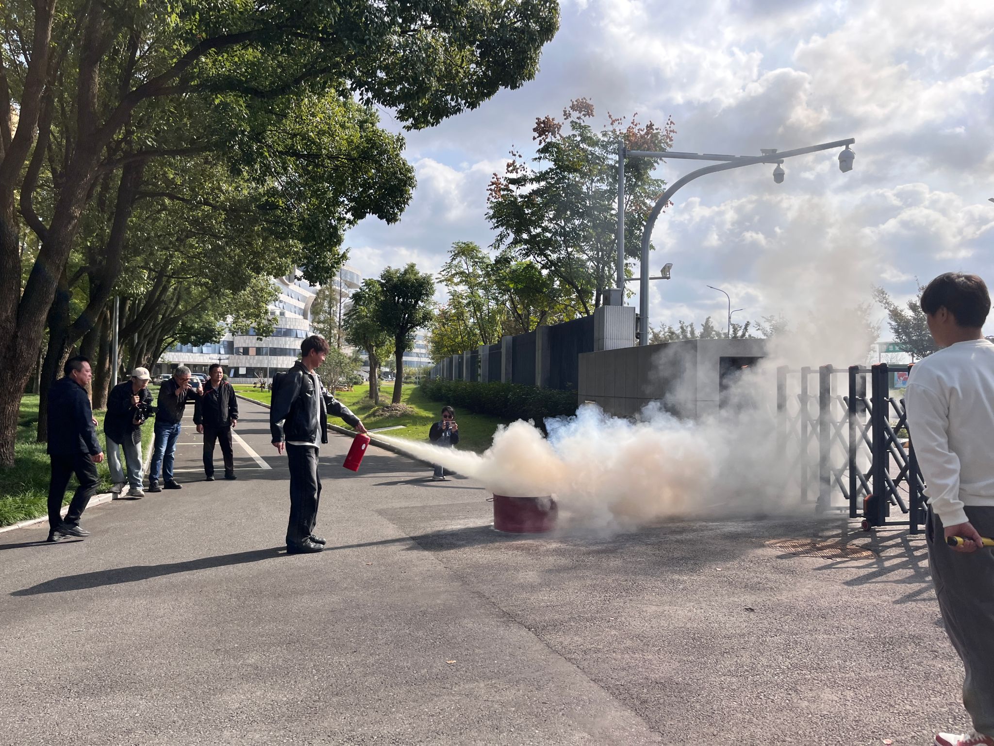校保卫处郑永辉老师为学院师生们普及了日常生活中消防安全常识,详细讲解了火灾预防措施和应对方法。随后,在保卫处专业人员的指导下,师生们学习了灭火器的正确使用方法,并进行了实际操作演练。活动中,大家积极参与,认真操作,确保每位参与者都能熟练掌握灭火器及防烟面罩的使用方法。