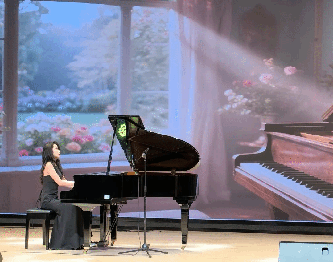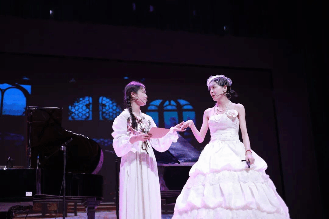 朱琳同学带来女声独唱《相思》。在朱恬懿同学的钢琴伴奏下,朱琳用她空灵婉转的嗓音,将相思之情娓娓道来。歌声中饱含着对思念之人的牵挂与眷恋,每一个音符都仿佛诉说着一段动人的故事,让听众沉浸在这份温柔而细腻的情感之中。