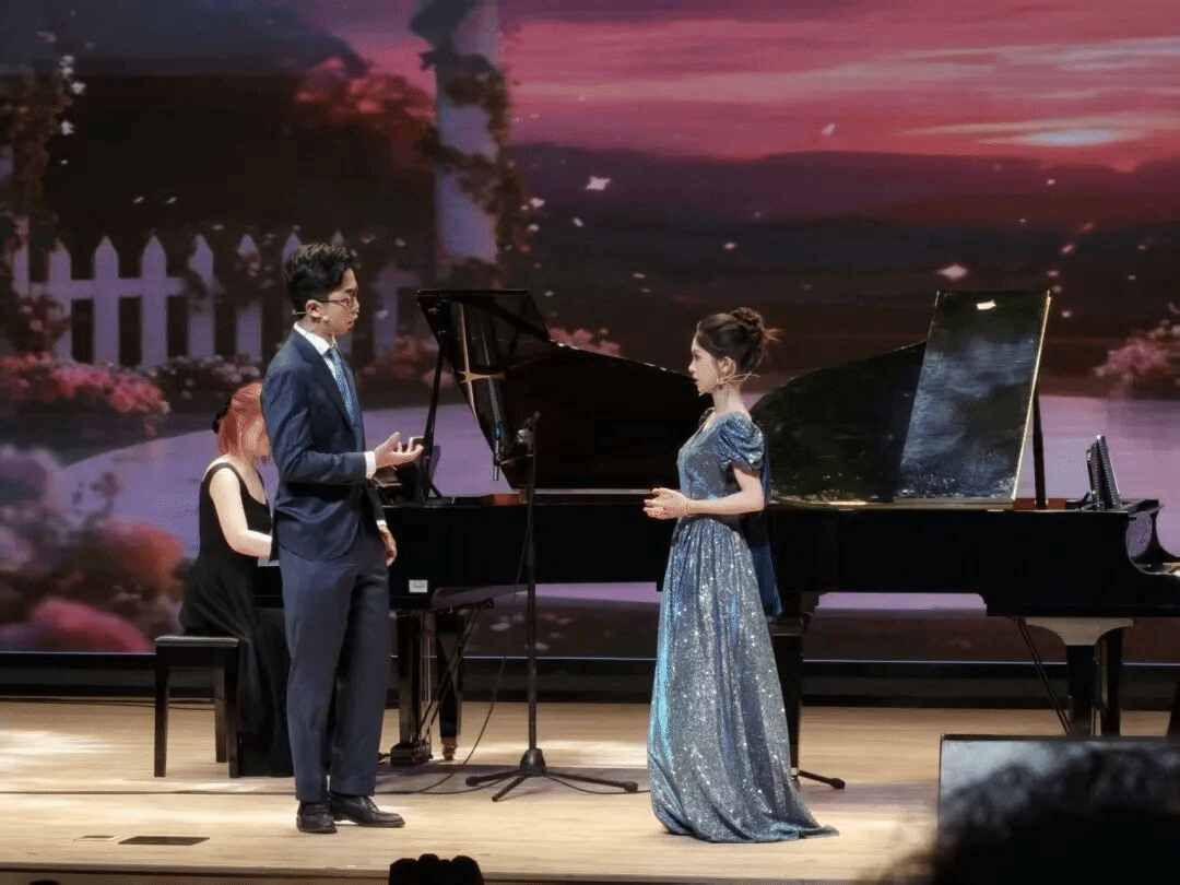叶炜豪同学的男声独唱《晚星颂》,在俞谦悦的钢琴伴奏下,为观众带来了一场听觉盛宴。叶炜豪富有磁性的嗓音,将晚星的静谧与美好娓娓道来,歌声中充满了对自然的赞美与对生活的热爱,营造出浪漫而温馨的氛围。