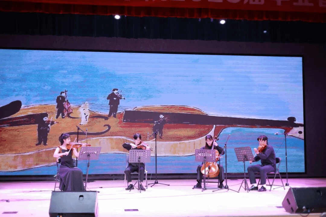 弦乐四重奏《如歌的行板》由小提琴手张倩妍、黄俊杰,中提琴手纪旭亮,大提琴手顾羽桐共同演绎。四位同学默契配合,以舒缓而悠扬的旋律,宛如一首优美的抒情诗。乐曲中,不同弦乐器的音色相互交融,细腻地表达出深沉而内敛的情感,让听众沉浸在宁静而美好的音乐世界里。
