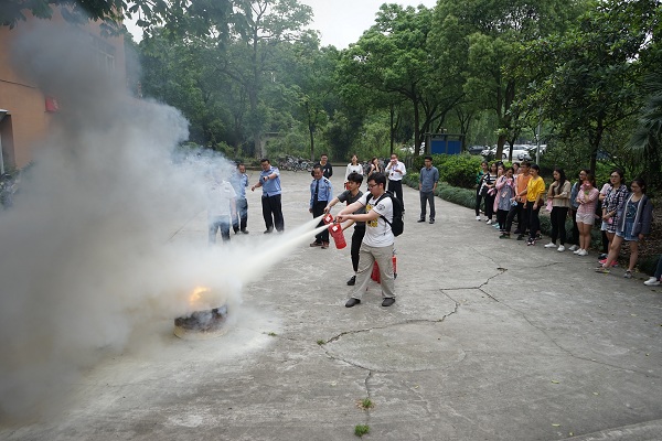 教师和学生代表进行具体的操作演练,在使用灭火器过程中增加了消防意识。