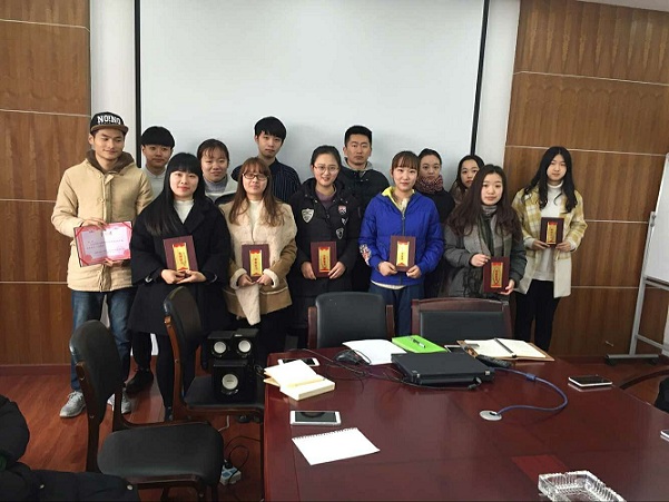 会上,辅导员徐德猛对有突出贡献的12名优秀学生干部进行表彰颁奖。分团委副书记蔡箐箐进行了15年度工作总结,辅导员徐德猛提出了2016年团学工作三个要点。在表彰大会的最后,院长助理陈煜作了讲话,他首先向获奖者表达了衷心的祝贺,并分析了98堂