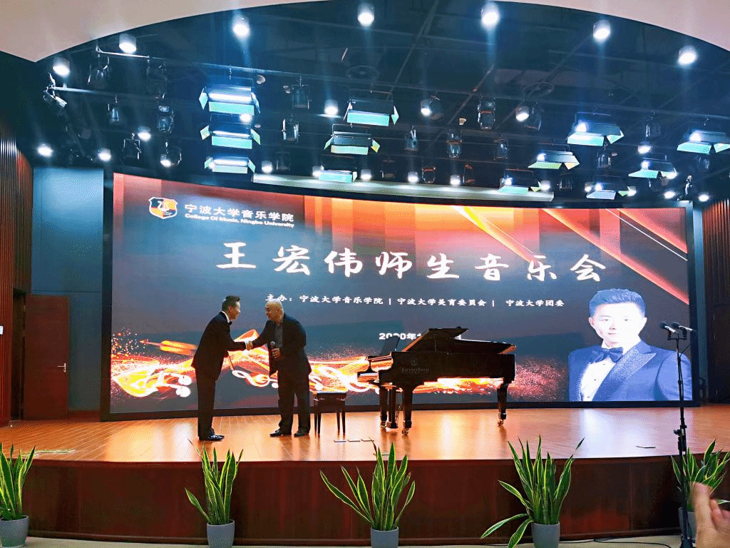 音乐会正式开始前,俞子正院长为音乐会致辞,并向王宏伟授予学院客座教授的证书。王宏伟先生表示,98堂