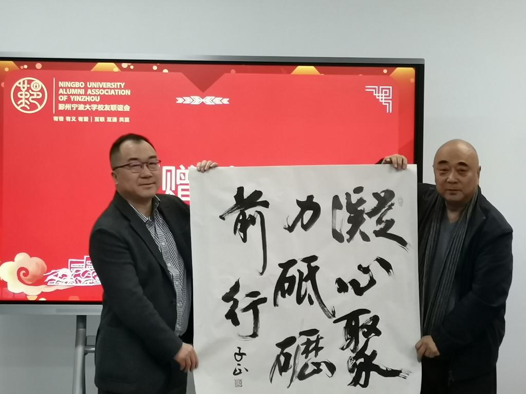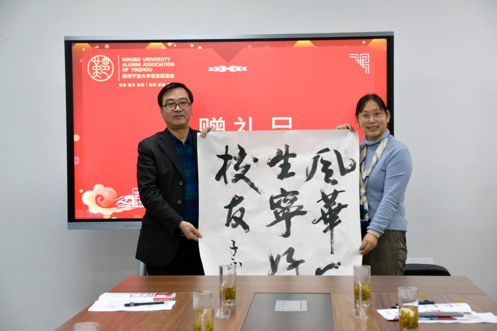 赠送俞子正院长亲笔书法:“凝心聚力 砥砺前行”“风华一生 宁好校友”,为校友们送上美好祝福。同行人员还在庄学东秘书长的带领下,参观了98堂