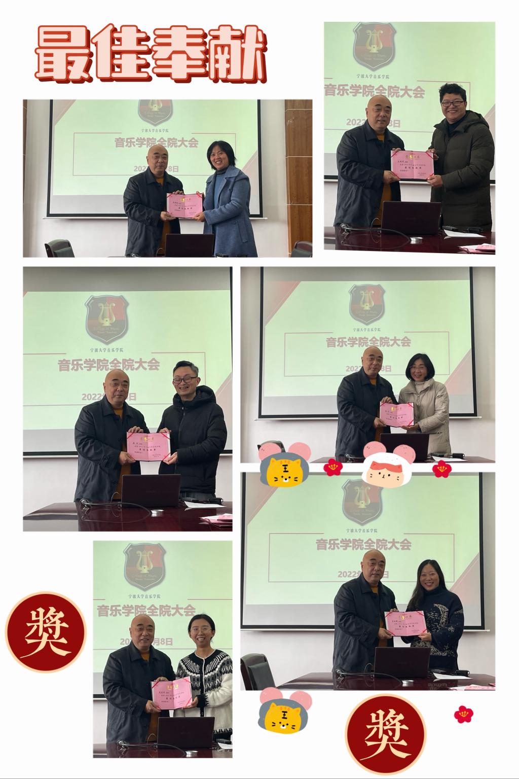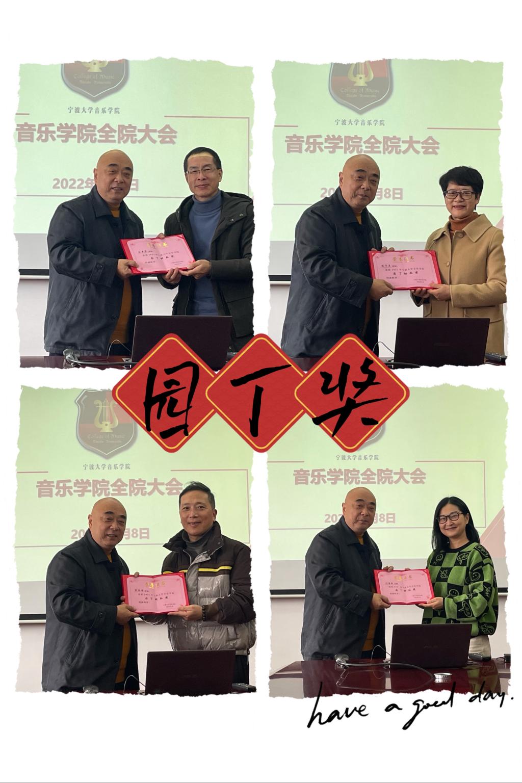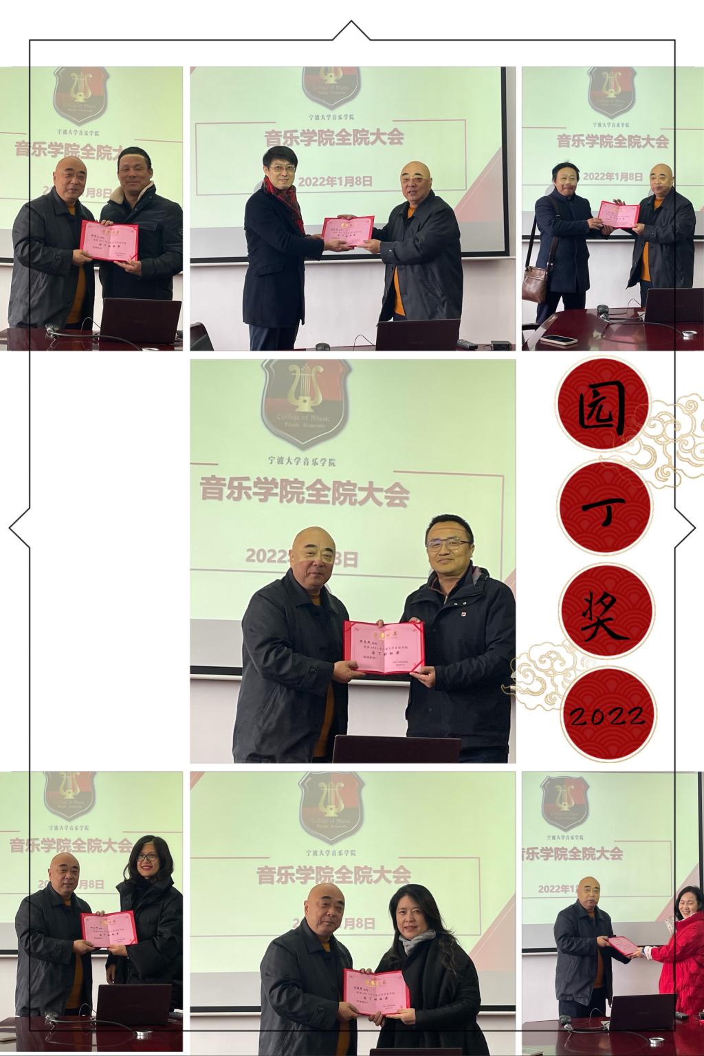 随后,由院长俞子正、书记屠春飞及工会主席钟青对2021年度学院所获各级荣誉的教师进行表彰,并对2021年度“科研卓越奖”、“教学敬业奖”、“艺术风采奖”“最佳奉献奖”“新人幸福奖”“先锋模范奖”“园丁耕耘奖”进行现场颁奖。