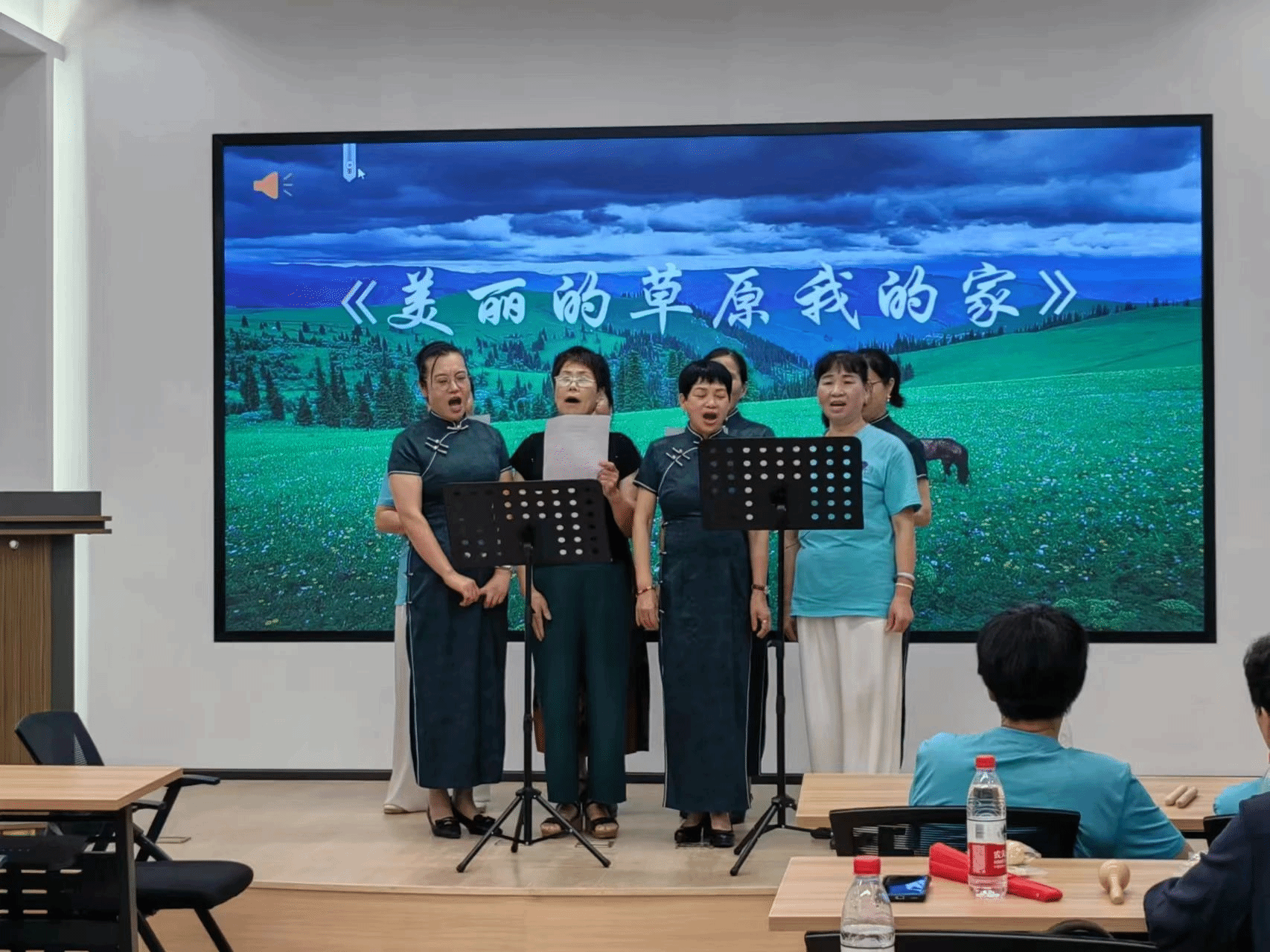 同时,老年大学的叔叔阿姨也准备了精彩的节目,如走秀《声声慢》、太极拳《中国功夫》以及合唱《美丽的草原我的家》,他们的表演将这次演出推向了高潮。叔叔阿姨也通过自己的方式向大家表现出他们对音乐和生活的热爱。