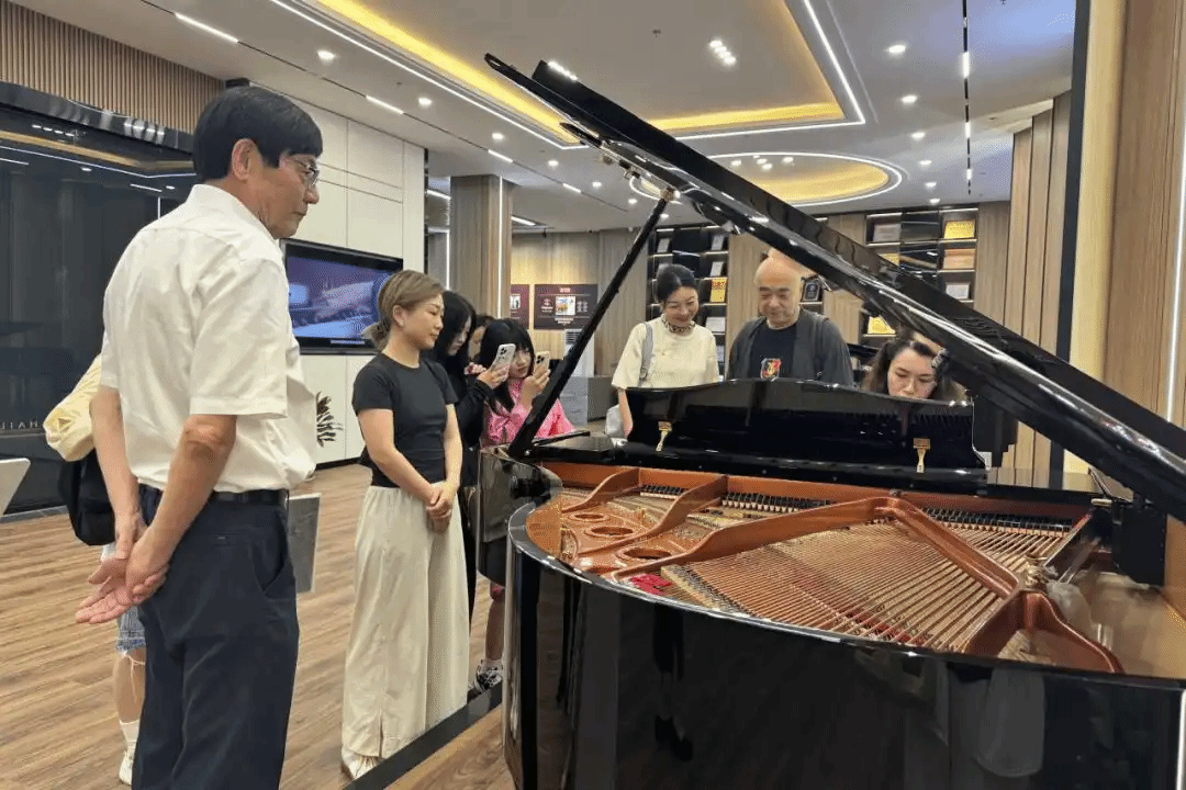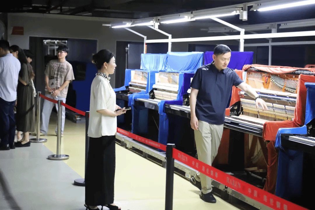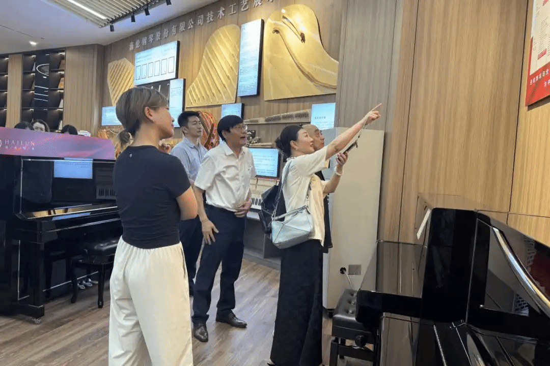 在海伦钢琴董事长陈海伦的热情引领下,师生一行先是参观了海伦钢琴产品展示厅及钢琴生产线,从展示厅内每架如艺术品般精致的钢琴,到生产线上从原材料到成品的精细制作,无不彰显着海伦对品质与艺术的极致追求。其中,俞院长和教师们的即兴演奏,让音乐与制造的美妙交融,为这次参观之旅烙下了深刻而难忘的印记,展现了海伦钢琴卓越的艺术魅力。