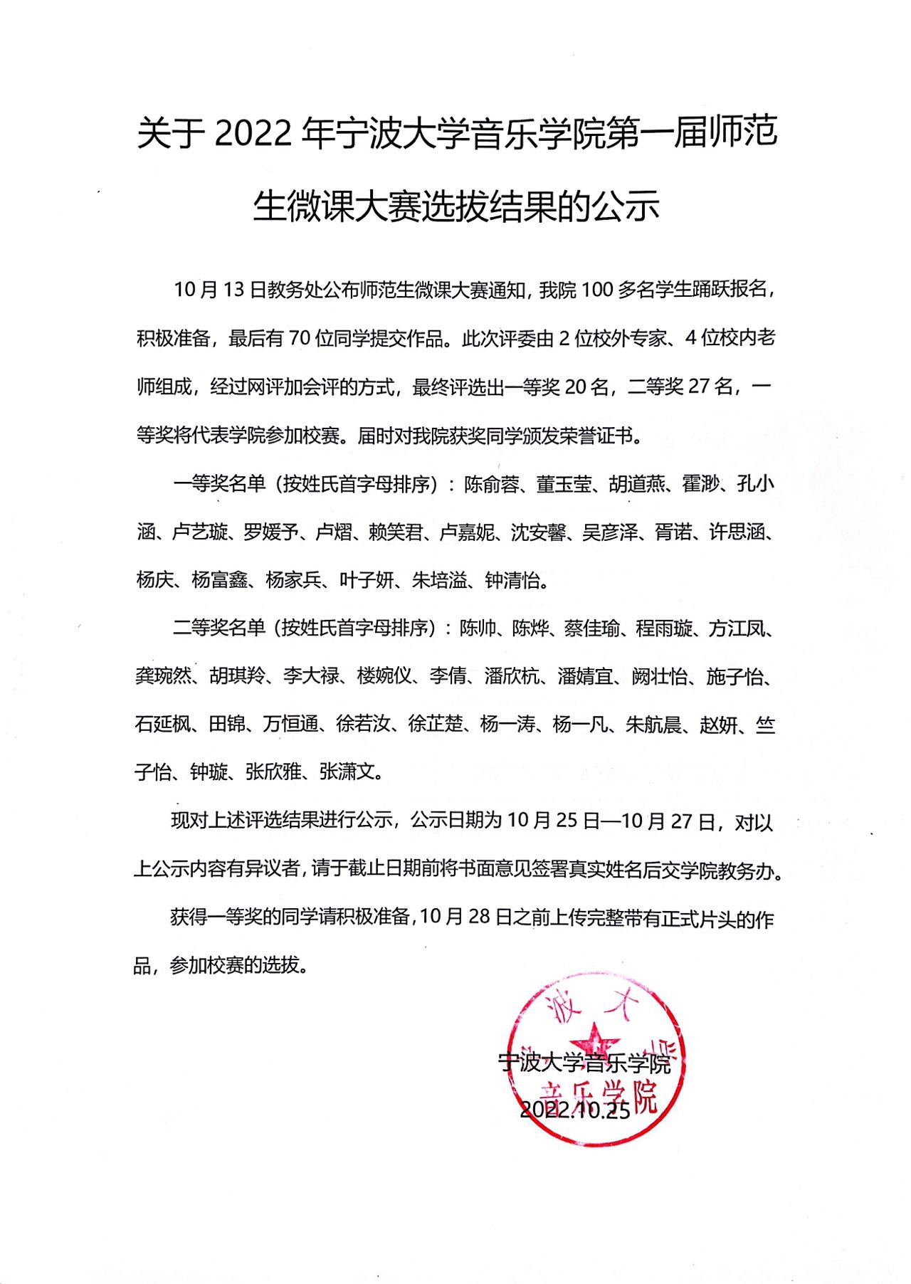关于2022年98堂 第一届师范生微课大赛选拔结果的公示
