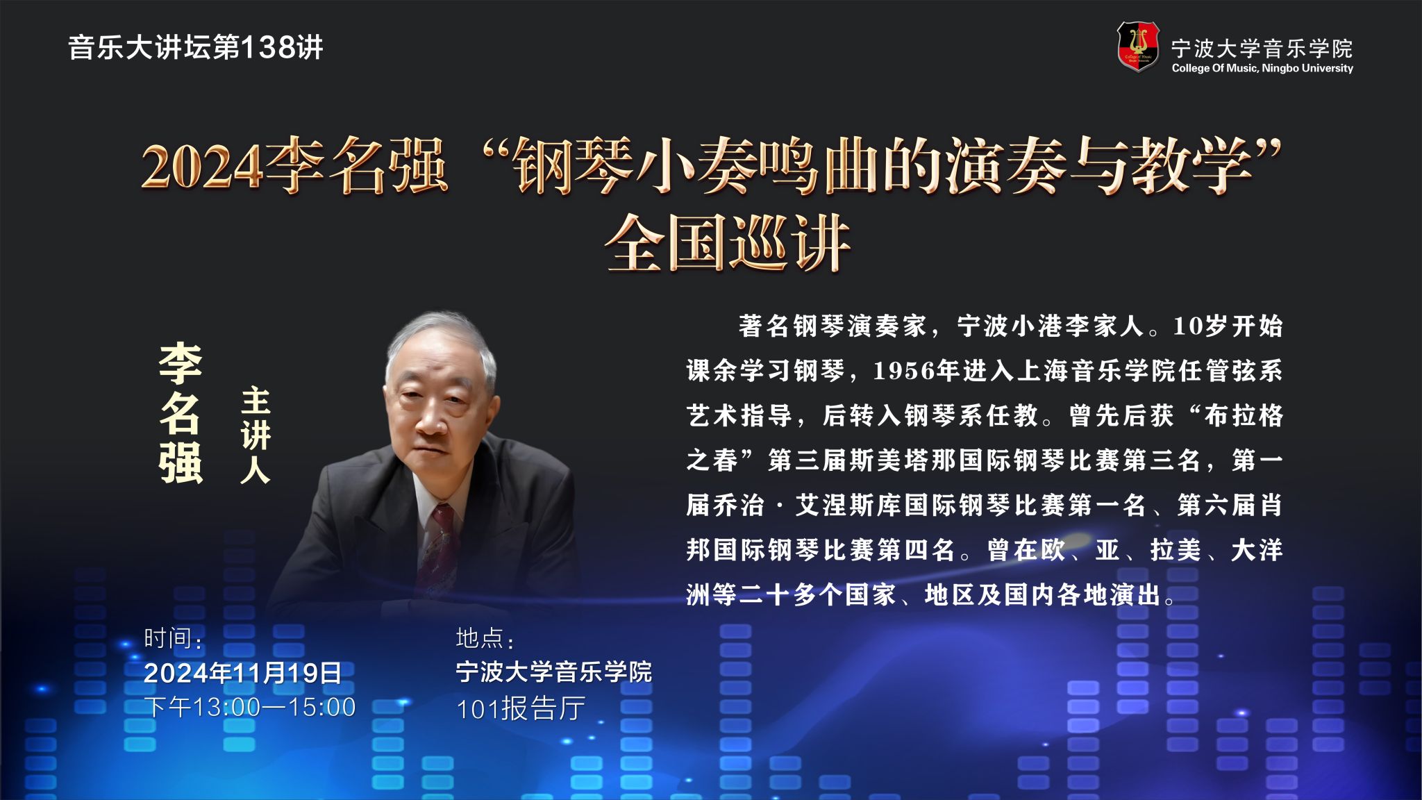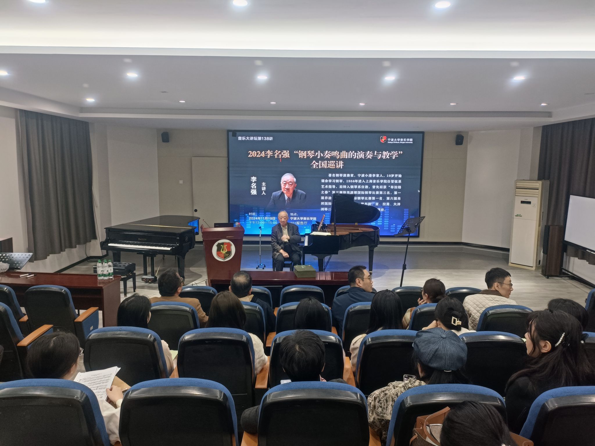 101报告厅举办《2024李名强“钢琴小奏鸣曲的演奏与教学”全国巡讲》大师班,98堂