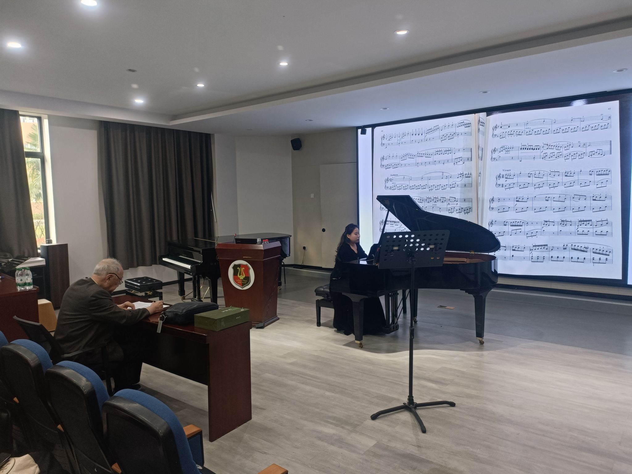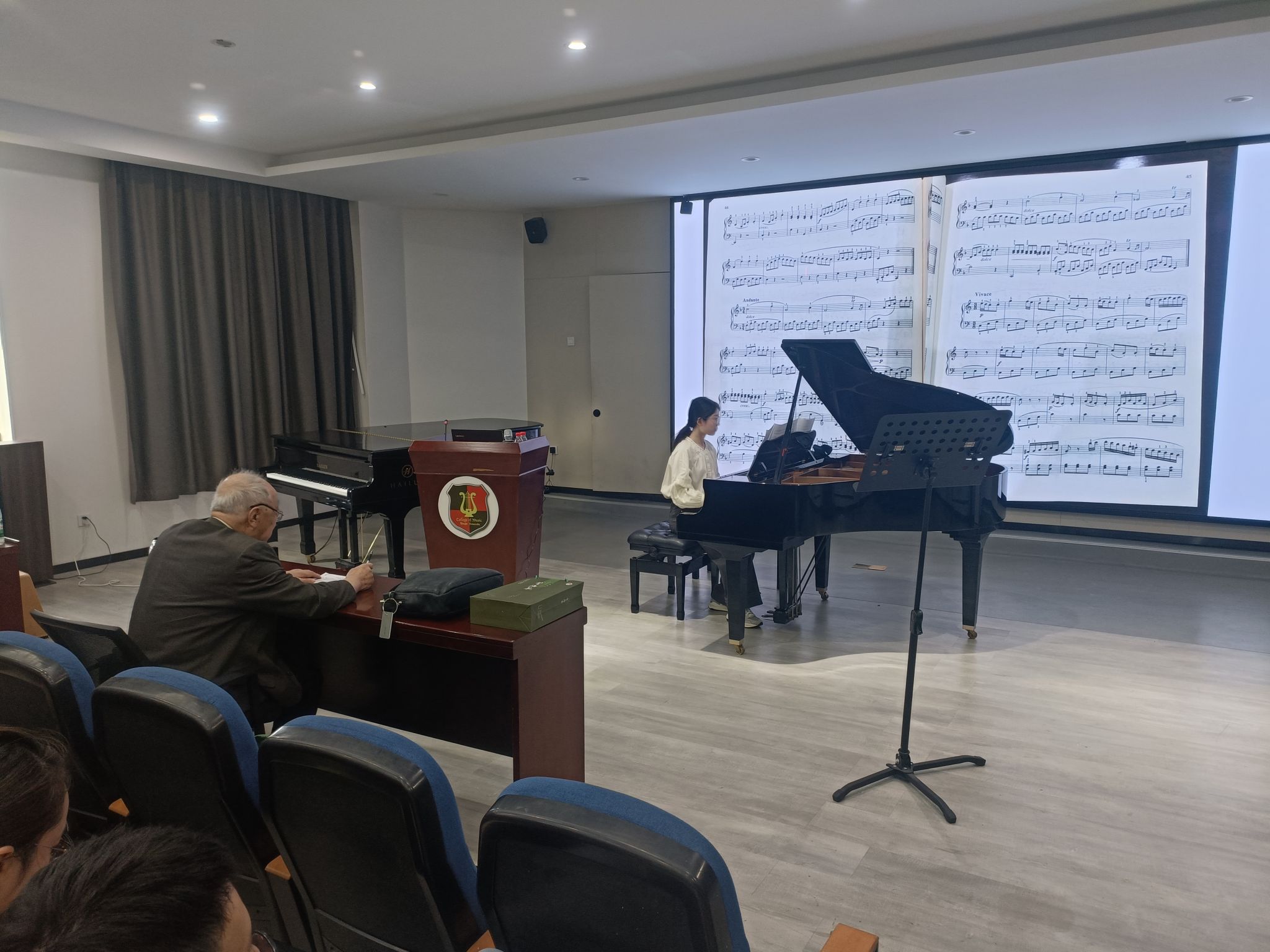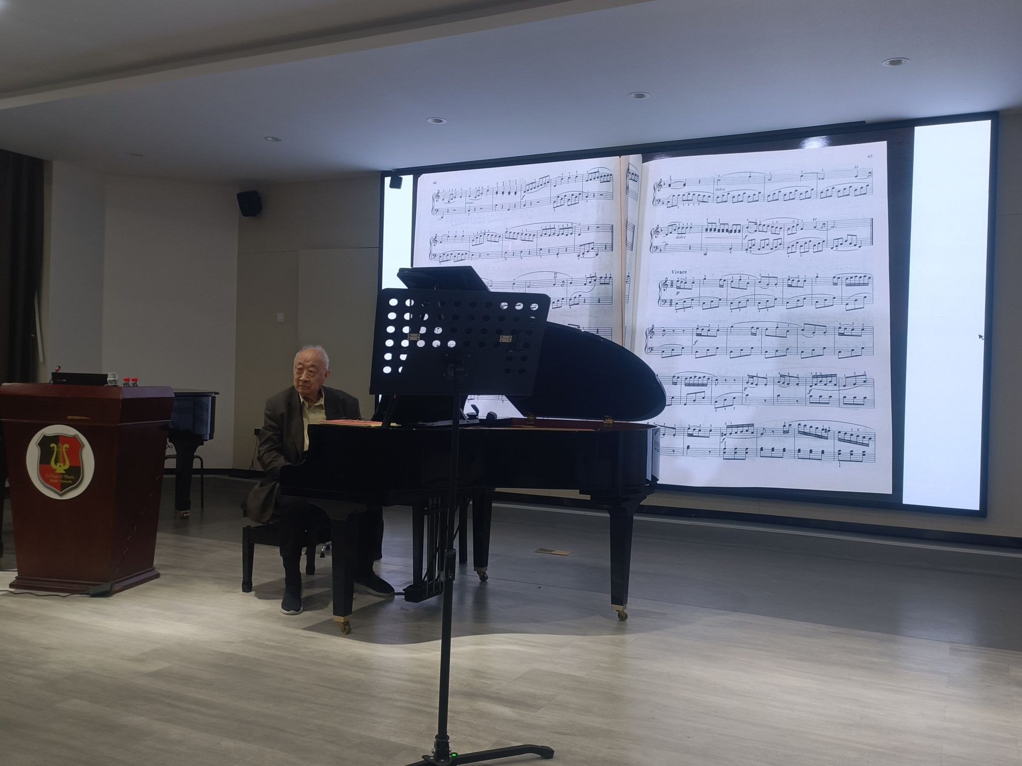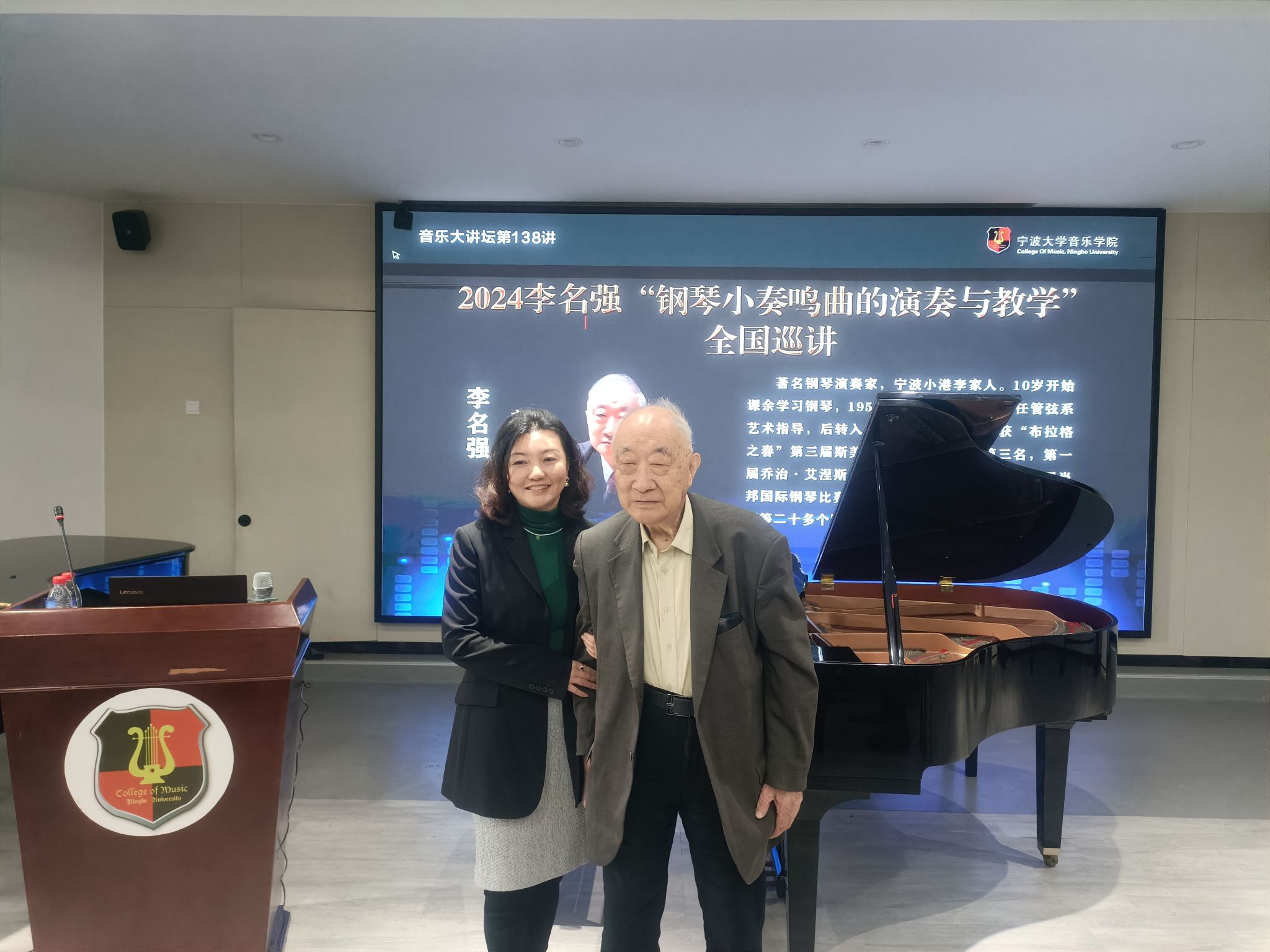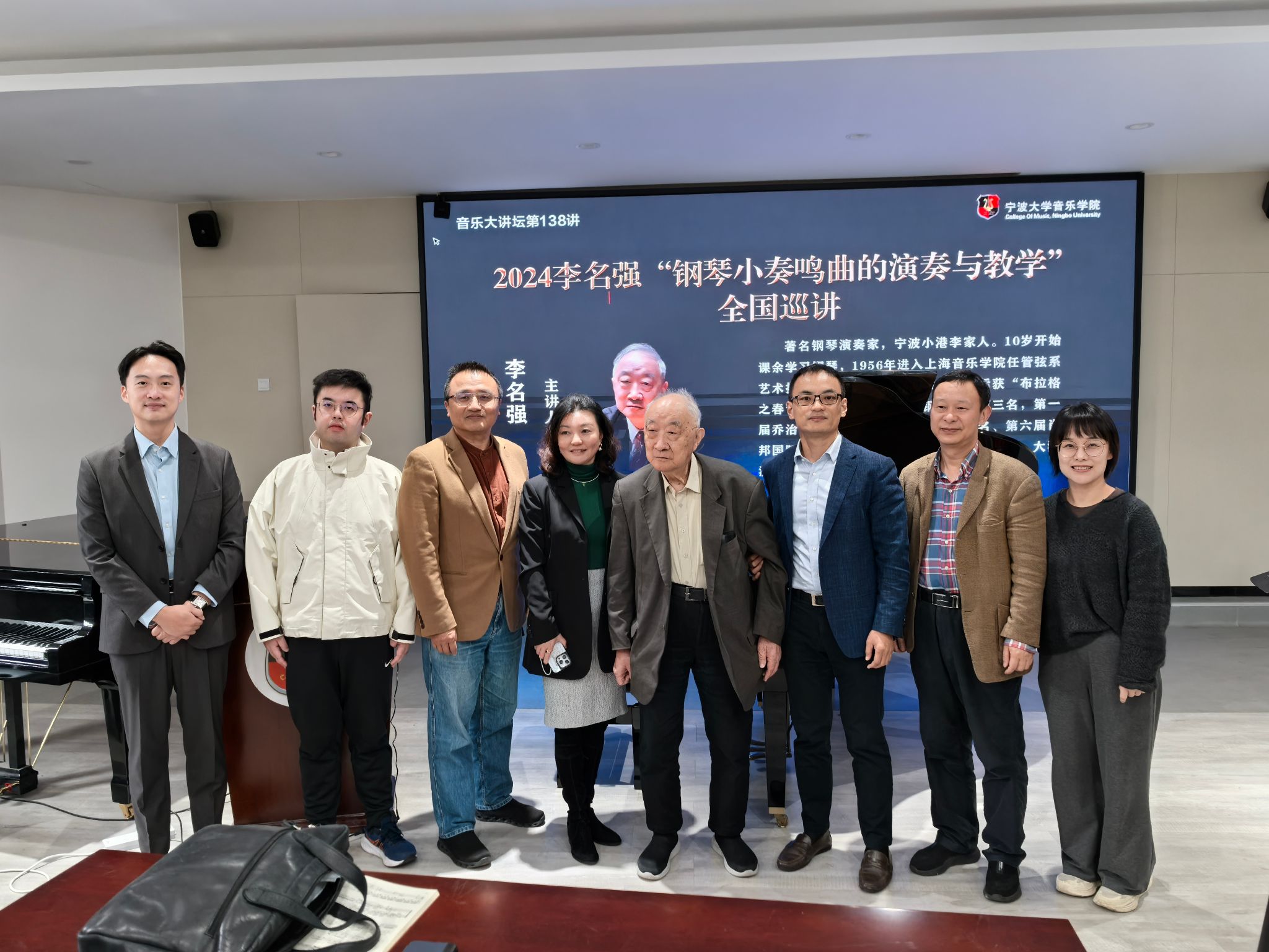 部分师生进行了现场观摩。李名强,著名钢琴演奏家,宁波小港李家人。10岁开始课余学习钢琴,1956年进入上海98堂