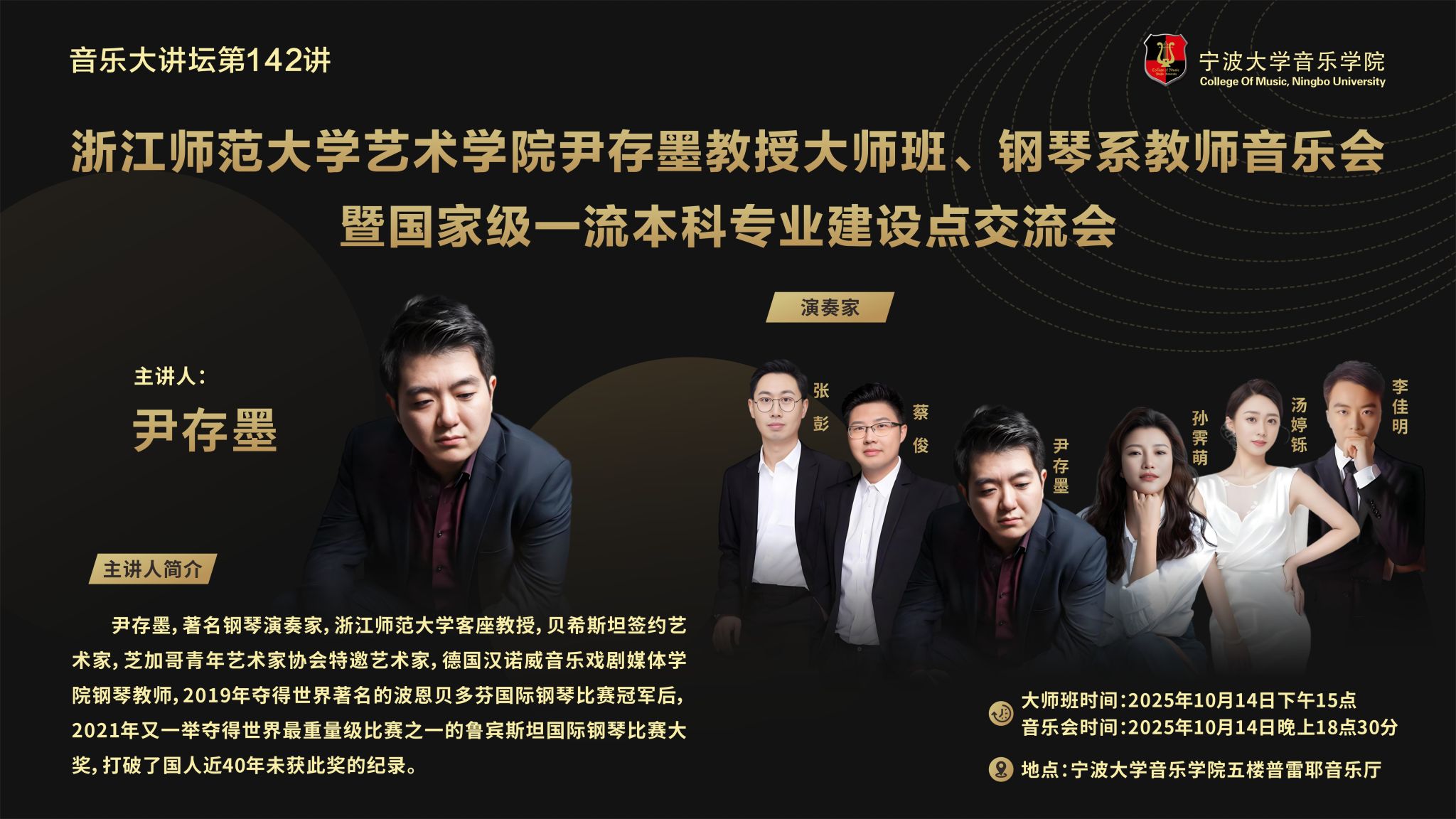 五楼普雷耶音乐厅内座无虚席,音乐大讲坛第142讲《浙江师范大学艺术学院尹存墨教授大师班、钢琴系教师音乐会暨国家级一流本科专业建设点交流会》在此如期举行。浙江师范大学艺术学院客座教授、德国汉诺威音乐与戏剧大学的尹存墨老师给98堂