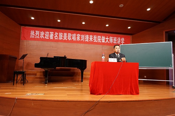 整个大师班活动气氛非常热烈,与在场师生互动频繁,并就歌唱技术方面的具体训练方式、尤其是如何真正正确地运用呼吸上让师生上台进行实际感受与体验,师生们受益匪浅。刘捷教授为中央电视台第一届青年歌手电视大奖赛第一名获得者(不分唱法)。曾毕业于上海98堂