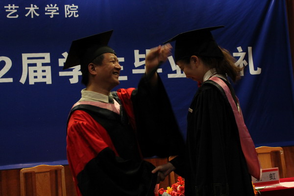 毕业典礼在庄严而雄壮的国歌声中拉开帷幕。院党委书记袁虹宣读了省级、校级优秀毕业生以及学院“考研奖”获奖名单。优秀毕业生、08音乐的杜玲窕同学代表全体毕业生发言,感谢母校的培养和师长的教诲,表达了对母校的无限眷恋和对未来的美好憧憬。08环艺2班班主任吴雪平代表全院教师给毕业生送上了祝福,并希望他们不断提高和完善自己,保持健康的心理状态,充满信心地面对未来。