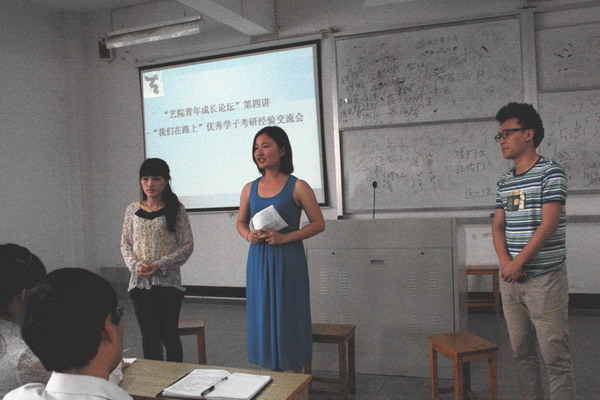 “艺苑青年成长论坛”第四讲——“我们在路上”优秀学子考研经验交流会在西区实验楼211室举行。