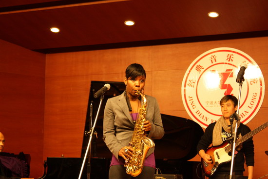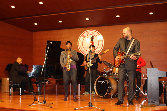 2月24日下午,美国爵士乐大师、美国R & B 超级巨星碧昂斯的萨克斯风手提娅•福勒和乐队在西校区小音乐厅作了爵士乐大师班讲座,98堂