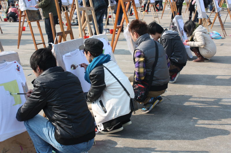 此次涂鸦大赛的主题是以“励志”为创意点,结合选手们自身的兴趣,发挥创造型思维,设计并制作属于选手自己的涂鸦t-shirt,青春不是人生的某段时期,而是一种心态;它不在于红润的脸色、鲜红的嘴唇和灵活的肢体,而在于意志力、想象力和情感的无限能量。寒冷的天气、凛冽的冬风无法阻挡选手们的创作热情,拥有梦想的大学生凭借青春的力量坚持着涂鸦。青春的我们是活力的载体,我们的青春是绚丽的未来。随着美好时光点滴流逝,伴着热情的旋律,精美的艺术品一一完成,简单的白色t shirt已经摇身一变成为绚丽多彩的精美艺术品。