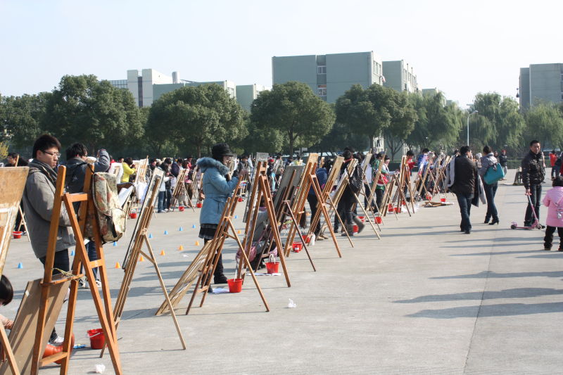 科技学院和浙江纺织职业技术学院的参赛选手们用自己的一双巧手书画着属于自己的青春活力,心有灵犀的校园情侣们尽情展示着彼此的默契。活动的志愿者们也尽职尽责,服务选手和观众热情的为选手们递送颜料和画笔为他们扶起被风刮倒的画板画架,为观众们提供选票以及引导,他们的无私付出是本次活动成功的不竭动力。