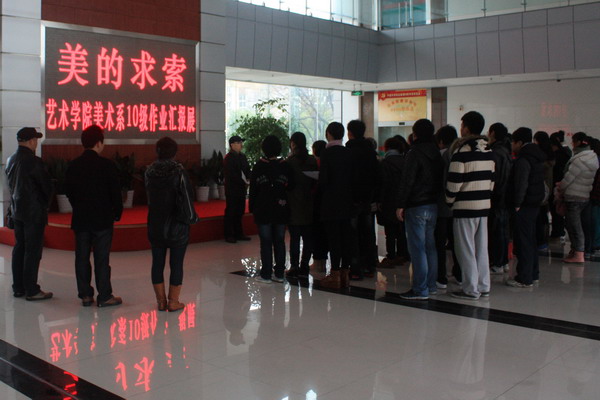 前来参加开幕式的师生们对画展表现出了极大的热情与兴趣,在观看展览的过程中,师生间展开了充分的交流与讨论,共同探讨对艺术的认识与理解。本次画展以“美的求索”为名,既是对美术学10级课程教学的一次阶段性总结,同时也是一次“美”的种子的播撒,我们期待心灵春天的缤纷!(张佩佩)