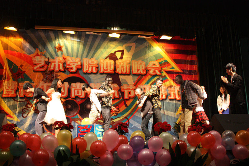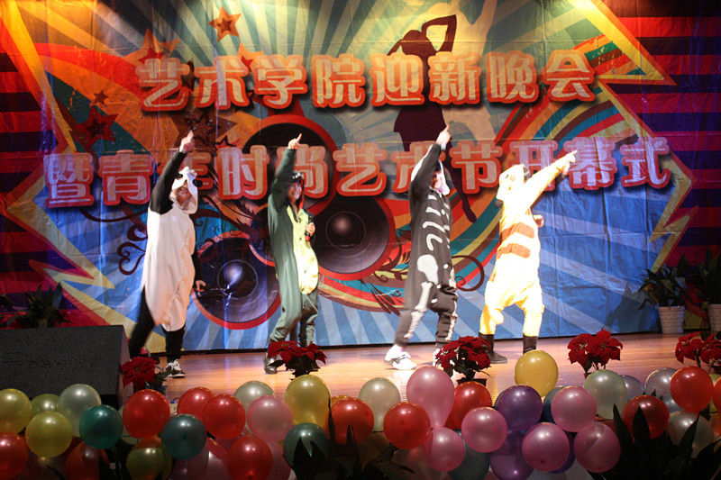开场舞《Baby baby》点燃了全场,舞蹈演员隐藏在观众身边,与台上的演员相印成趣,如此新颖、创意的开场方式引得台下观众欢呼声连绵起伏。第一篇章《新蕊待放》的演员全部由大一新生组成,他们的自信与热情向大家展示了新蕊般的生机和活力。帅气的萨克斯表演,将整场晚会推进了第一个高潮。第二篇章星光熠熠,被观众评为最好看的一个篇章,小组唱《海芋恋》可爱的动物连体衣,小合唱《相亲相爱》铿锵的歌喉,男女对唱《老男孩》以及啦啦队舞蹈《Oh!》中迷人的艺院美少女团给观众们留下了深刻的印象,T台秀更是展示了艺术学院专业的服装设计功力和舞台表演设计的创意,更有来自国际交流学院的主唱阿里以及帅气美丽的模特Pigar和Fany用礼服向观众们展示了异域风情。一场由黑人朋友阿里以及印尼的Pigar、 Fany和现场观众的国际组合挤气球大赛将晚会推向了另一个高潮。11音乐专业余谓松扮演“宁大李玉刚”,悠扬婉转的嗓音唱出了贵妃醉酒的迷人与妖娆。最后一曲《祖国我为你干杯》表达了艺院学子对爱国强校之志、青年担当之誓。伴着《我的未来不是梦》的激情旋律第十一届青年时尚艺术节开幕式暨迎新晚会圆满结束。史无前例的爆棚人气和高水准的节目质量,充分展现了98堂