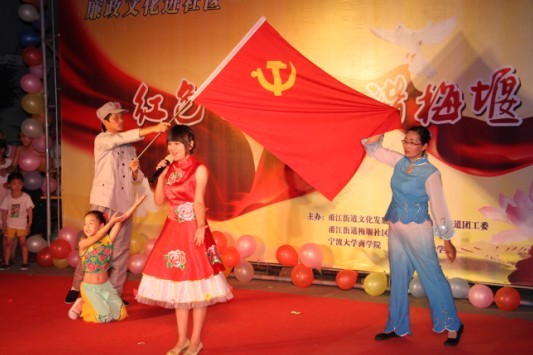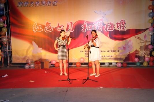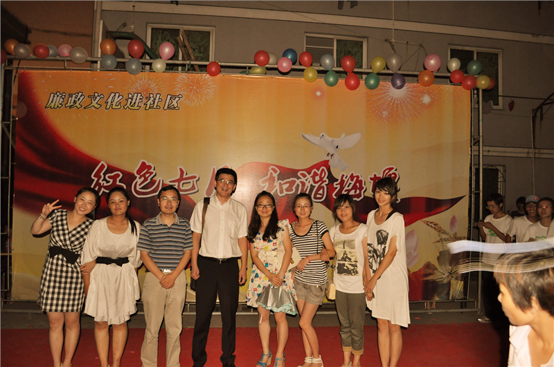 7月18日晚7点,江北区甬江街道梅堰社区的新文化广场上,人头攒动,琴声悠扬,一场精彩的以“红色七月,和谐梅堰”为主题的纳凉晚会正在这里举行,吸引了众多居民驻足观看,为这炎炎夏日吹起一阵和谐、文明、温馨的清风。校团委书记周青、商学院党委书记熊德平、98堂