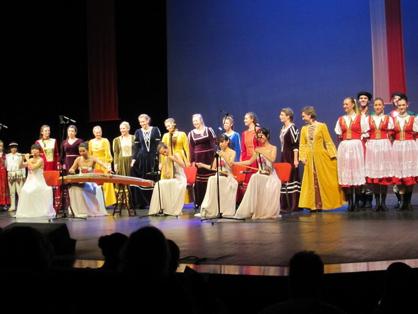 学生艺术团女子民乐组合的精彩表演。她们用优美的民乐和圆润的嗓音给几千名来自世界各地的同行和观众演绎了中国版的波兰著名歌曲《小杜鹃》。在悠扬的歌声和民乐声中,上百名美丽的波兰女歌唱家走上舞台簇拥着女子民乐组合,同声高唱《小杜鹃》,将宏大的音乐节闭幕式推向了高潮。