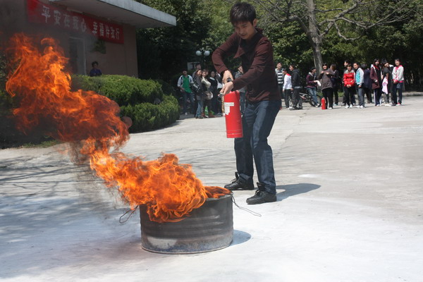 比赛开始之前,校保卫处金济富老师给在场同学作了灭火器使用培训,并做了现场示范表演,同时他还给大家讲解了一些消防安全案例。