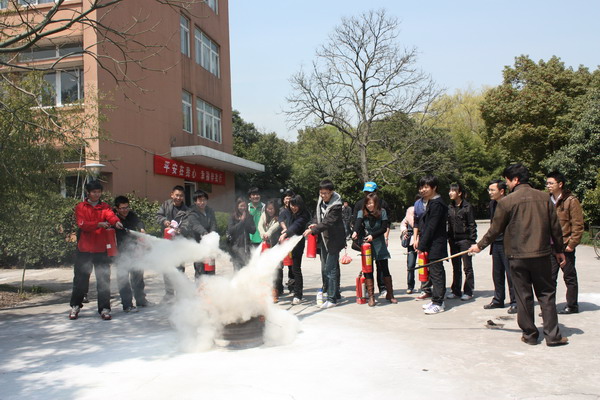 3月30日中午,西校区厚德楼前。“预备——开始”,随着一声令下,“消防员”手提灭火器,迅速扑向“火灾现场”……这是98堂