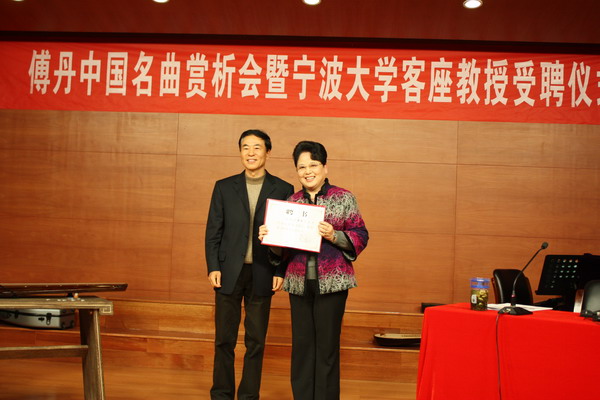程刚书记在受聘仪式上致辞,对傅丹受聘为我校客座教授表示感谢和欢迎,同时希望傅丹女士能关心我校艺术学科的建设和发展,多给艺术学科和艺术学院一些指导和支持。傅丹女士也在受聘仪式上表示,今后将作为宁大一员积极推动98堂