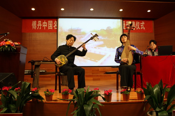 赏析会上,傅丹女士将在场师生带入到一个唯美动听的音乐世界中,令广大听众如痴如醉。她与大家一起赏析并演奏了《十面埋伏》、《霸王卸甲》、《江南春》、《平沙落雁》等琵琶经典名曲。三弦、柳琴演奏家姜水林、琵琶演奏家王涛、笛箫演奏家陈杭明等艺术家共同参与了表演。宁波市文联副主席、宁波市美术馆馆长韩利诚出席了本次活动。