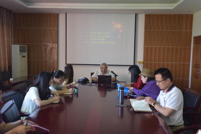 2017年6月15日上午十点,著名民族音乐学家杜亚雄教授在98堂 厚德楼408会议室为学院师生们做了一场题为《音乐学研究方法与论文写作》的精彩讲座。此次讲座由杨红光副教授主持,党委书记刘缨、学院教师及研究生等共同参与。此次讲座内容分为音乐学的研究方法和论文写作两大部分。杜亚雄教授对于论文的写作方面提供了许多实用的技巧,并在讲座中时常穿插一些小故事及自己的人生经验体会,使得讲座内容丰富生动。学院师生们通过此次讲座,不止拓宽了在音乐学研究方面的视野,同时对论文写作方面有了新的启迪。