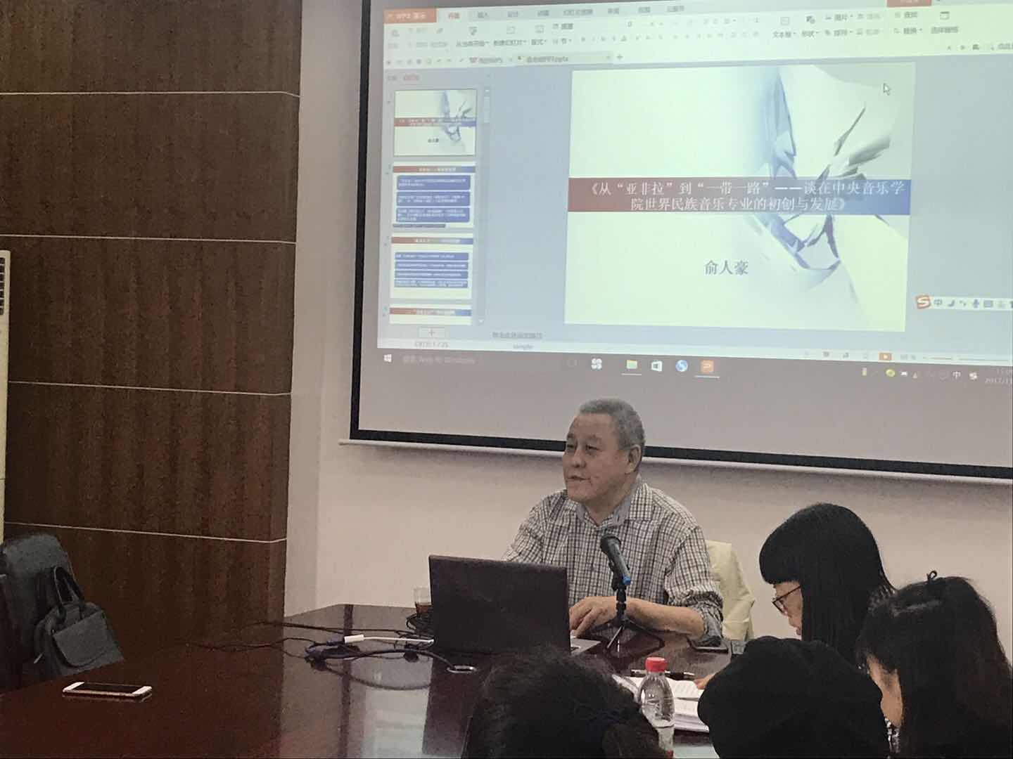 音乐学系教授俞人豪主讲的学术讲座顺利举行,讲座主题为《以“亚非拉”到“一带一路”——世界音乐专业在中国》。参加聆听讲座的人员有:98堂