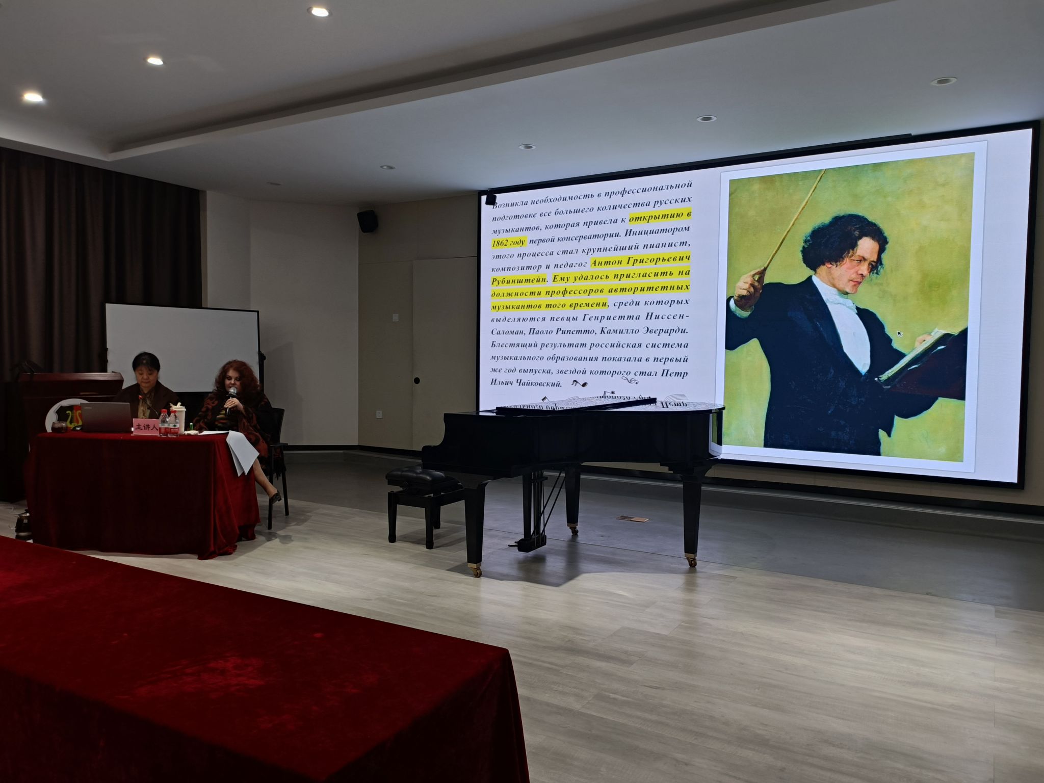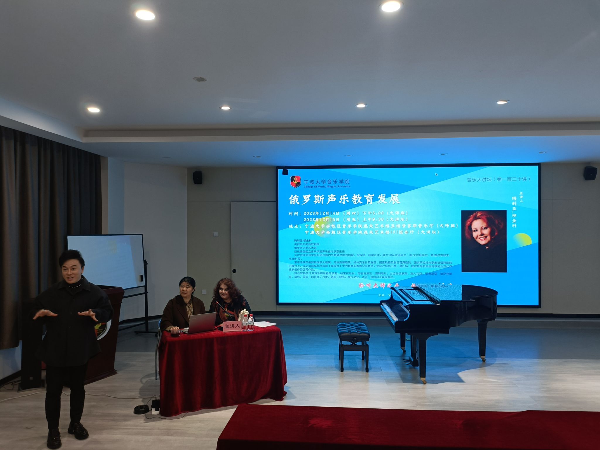 声乐室内乐系主任玛利亚·柳金科莅临校园,在逸夫艺术楼五楼普雷耶音乐厅和一楼101报告厅分别举办声乐大师班和主题为《俄罗斯声乐教育发展》的音乐大讲坛。