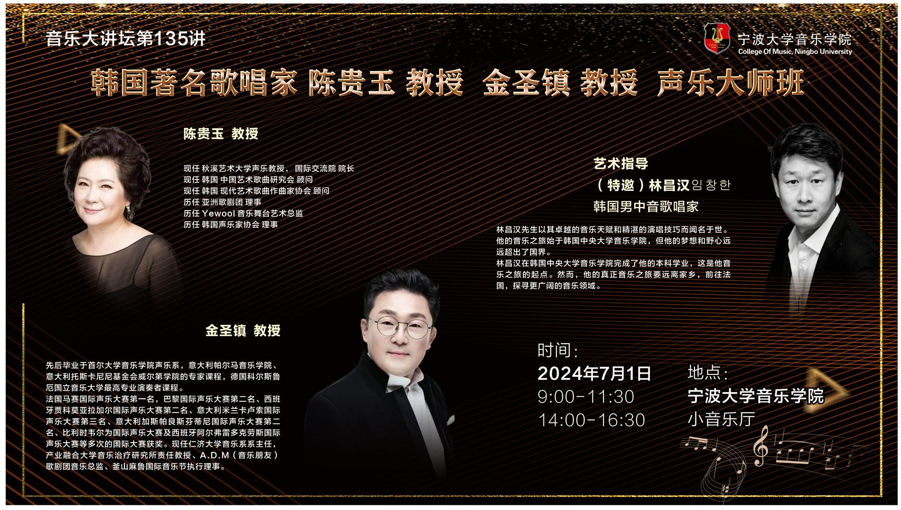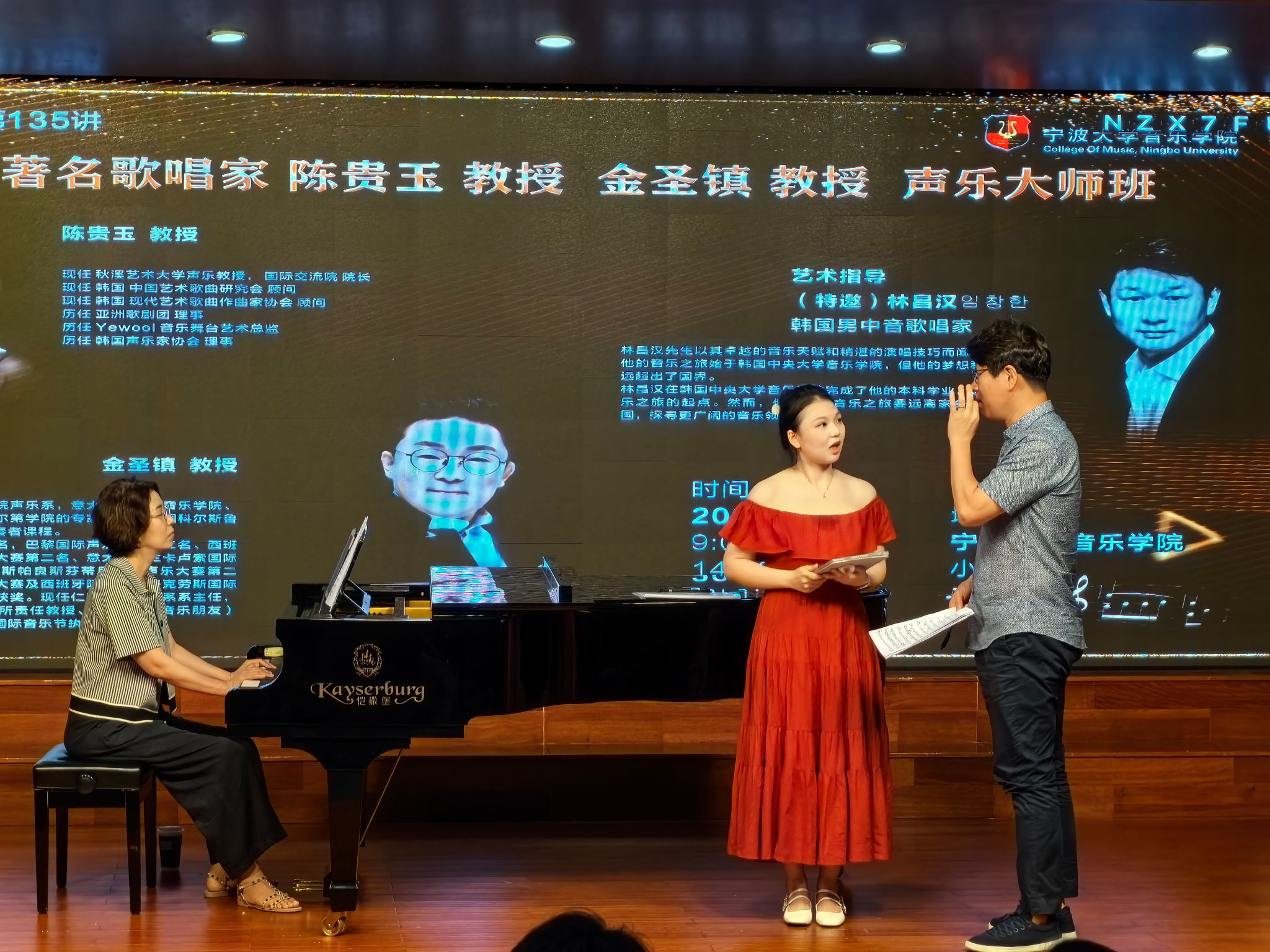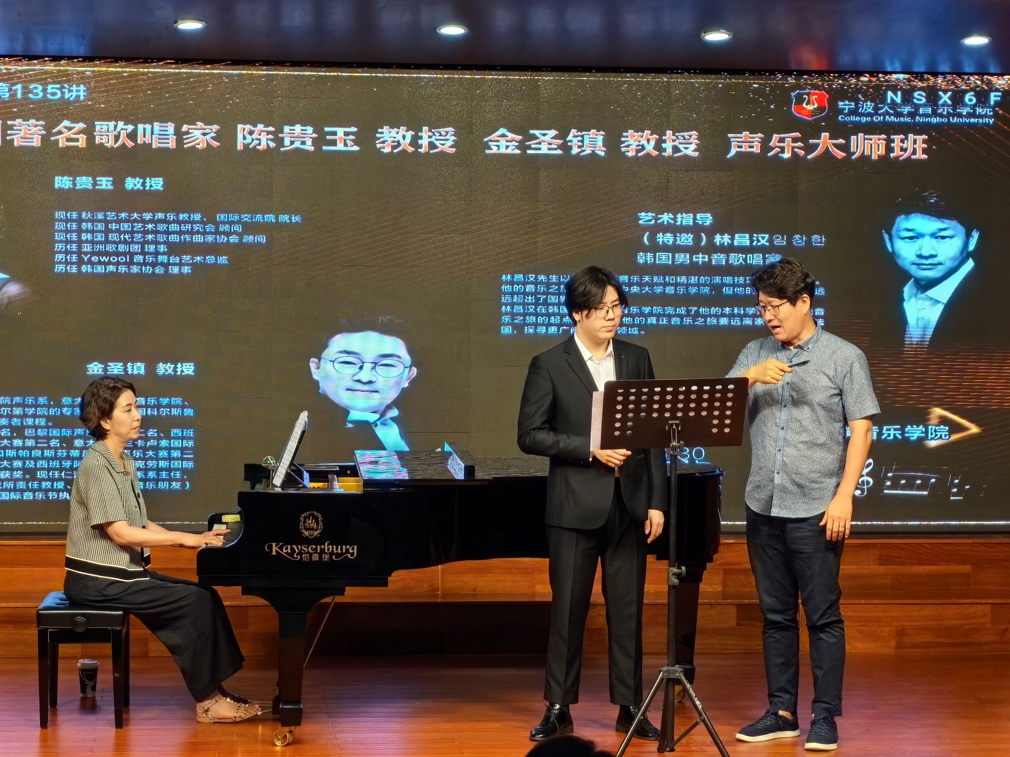2024年7月1日,韩国著名歌唱家陈贵玉教授、仁济大学音乐系系主任金圣镇教授及韩国男中音歌唱家林昌汉老师,分别在98堂