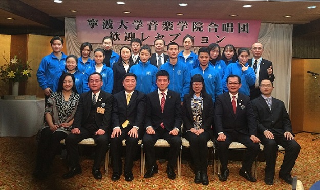 合唱团,称赞12名学生组成的合唱团是一个支年轻又有活力的合唱团,也是一支表现非常优秀的合唱团,希望今后通过更多的音乐交流加深中日两国的友谊、保持并发展益田市和宁波市的友好关系,双方就音乐文化交流与合作进行了协商。(乐悦)