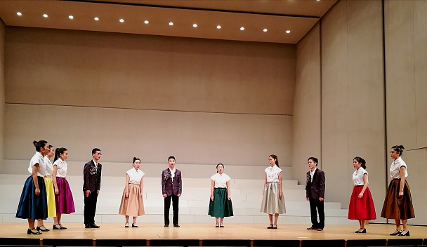 学生合唱团和东京女声合唱团、早稻田实业学校音乐部合唱班、岛根县立大社高等学校合唱团等45支日本团队一起同台演出,参加了合唱交流活动。