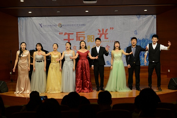 在小音乐厅隆重举行“午后阳光”庆祝宁大建校三十周年专场音乐会。院长俞子正、党总支书记刘缨、院长助理陈煜及学院历届系主任、班主任、部分校友和学生代表共同欣赏音乐会。