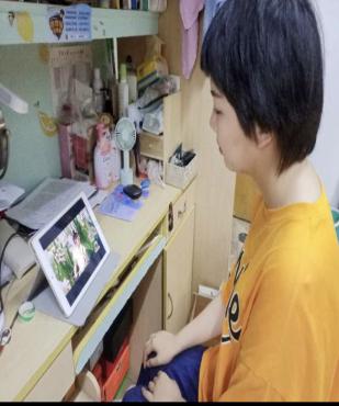 “展播的时间段正巧我上课刚结束。为了能第一时间感受这种特殊的云端音乐会的方式,迫不及待的我直接用手机站在楼梯上看了好长时间。我收看的是美育云端课堂的艺术节闭幕式,主题是“梦回延安”。中央98堂