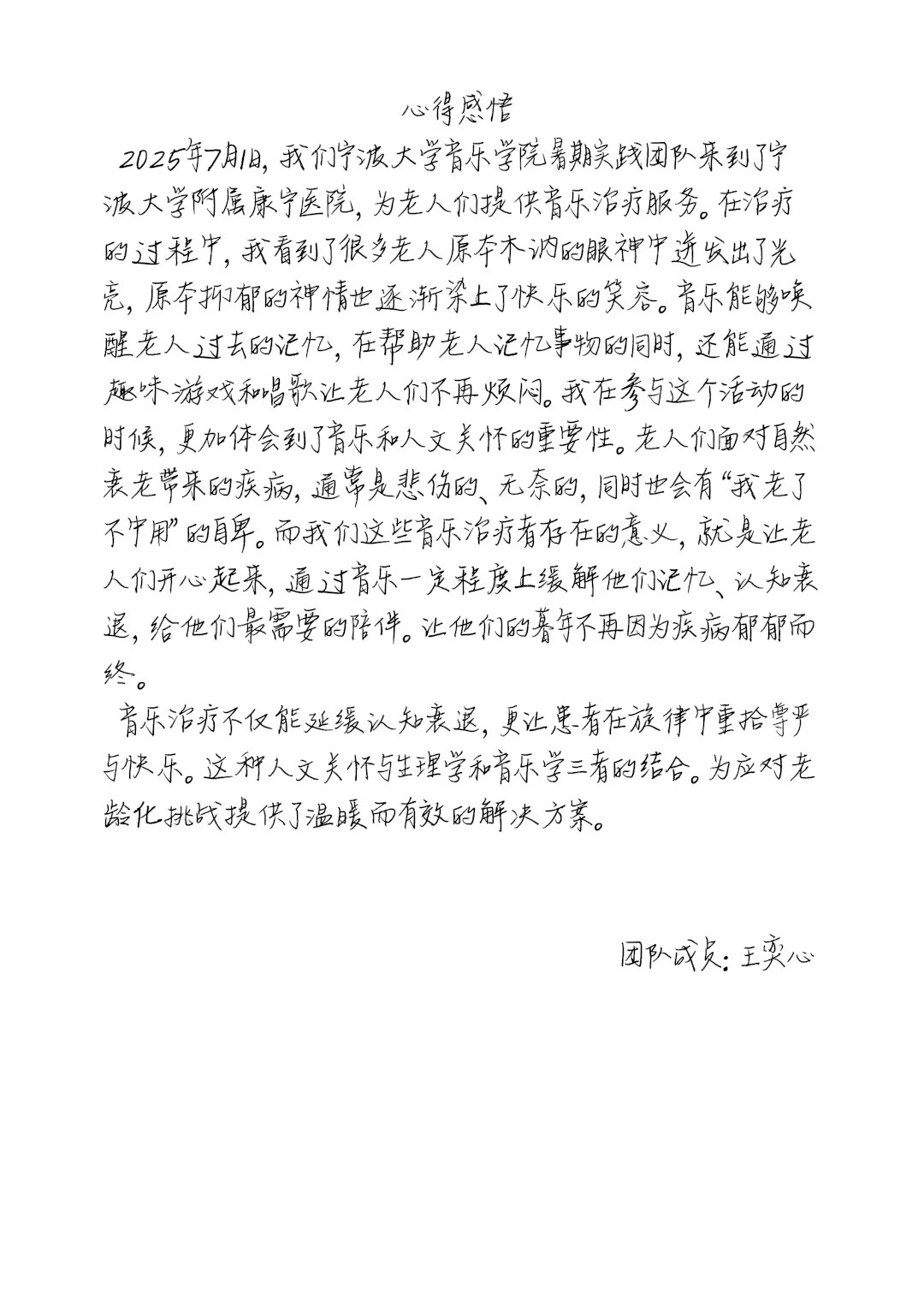 “以音筑爱,疗愈康宁”暑期实践团队