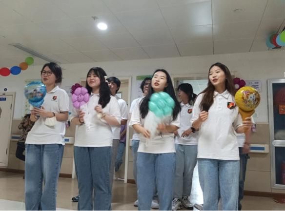 6月1日,对于普通的小朋友们来说,是一个欢乐和轻松的日子,可对于生病躺在病床上的孩子们而言,却是带着病痛和忧郁的一天。为了给小朋友送去开心与幸福,98堂 2022级音乐学(师范)1班的学生带着精心准备的礼物和歌曲,来到了宁波妇女儿童医院。为孩子送上最诚挚的祝福,祝他们儿童节快乐,早日康复。