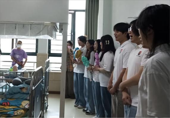 在病房里,小朋友们承受着他们这个年纪难以承受的病痛,他们在看到98堂 大哥哥大姐姐后,虽然脸上满是疲惫的神情,但眼中却闪烁着期待的光芒。在病床前,同学们为小朋友们带去了精心挑选的几首动画片主题曲。歌曲的旋律充满了阳光和活力,小朋友们的脸上逐渐露出了快乐的笑容。