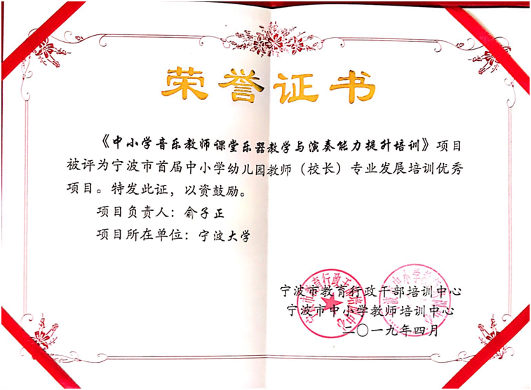 98堂 培训项目荣获宁波市首届中小学教师专业发展培训优秀项目