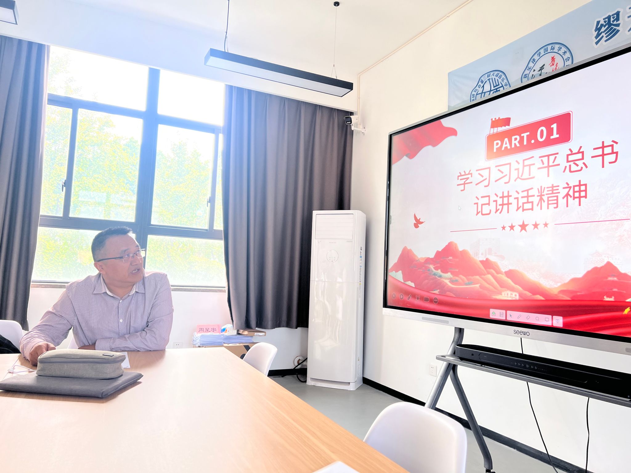 教师支部书记徐志斌首先讲“大力弘扬教育家精神,加快建设教育强国”专题党课,学习习近平总书记在全国教育大会上的重要讲话精神,要求各位教师围绕立德树人的根本任务,大力弘扬教育家精神,党员教师示范引领,助力教育强国建设。
