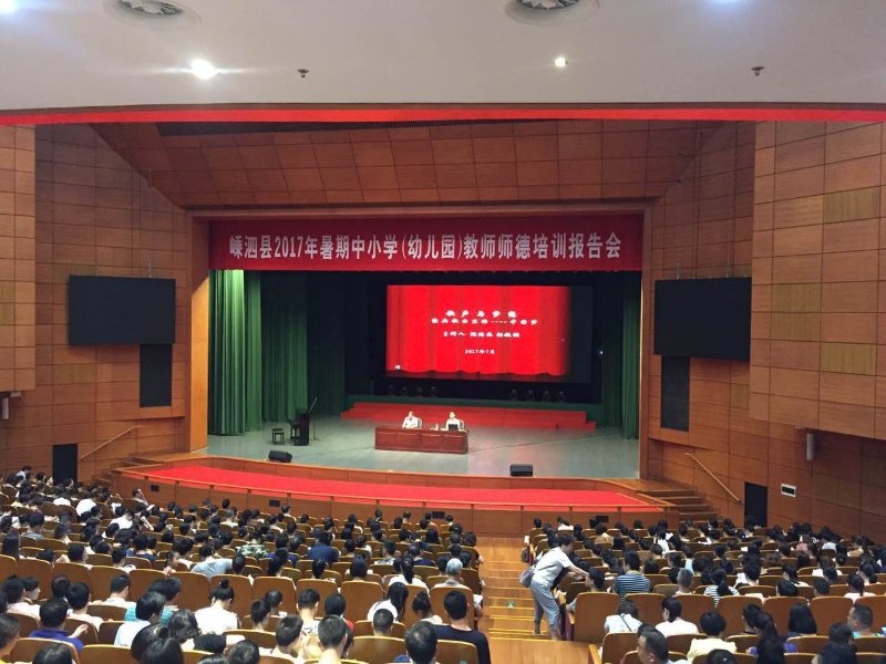 7月6日,应舟山嵊泗县教育局邀请,音乐院教师党支部书记沈浩杰老师冒着酷暑,为该县一年一度的全体教师师德培训送去精彩讲座《歌声与梦想——经典歌曲里的中国梦》,该县最大的剧场嵊泗县海洋文化中心,县教育局领导、全体756名教师济济一堂,整整一天的讲座,大家始终沉浸在惊奇、欢笑和眼泪中,毫无倦意。