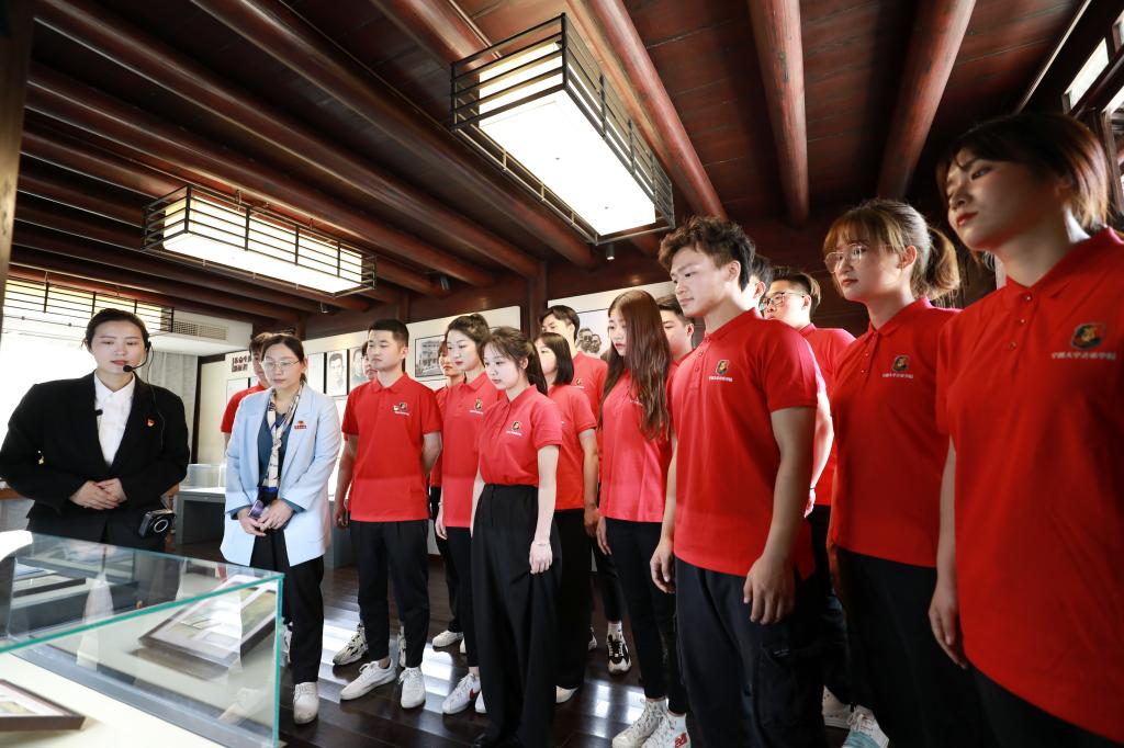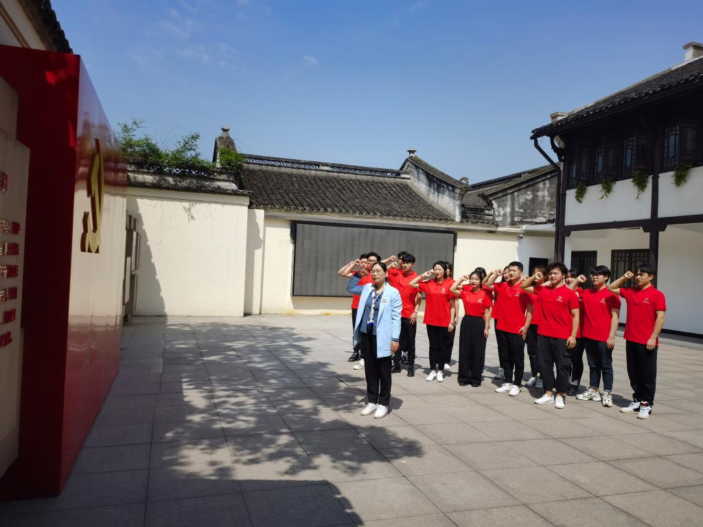 2021年4月9日上午8:30 ,98堂 党总支书记屠春飞与红色文艺轻骑队成员在98堂 西区小音乐厅集合,前往张人亚故居参观学习,听学堂讲解员讲述张人亚守护党章的故事。