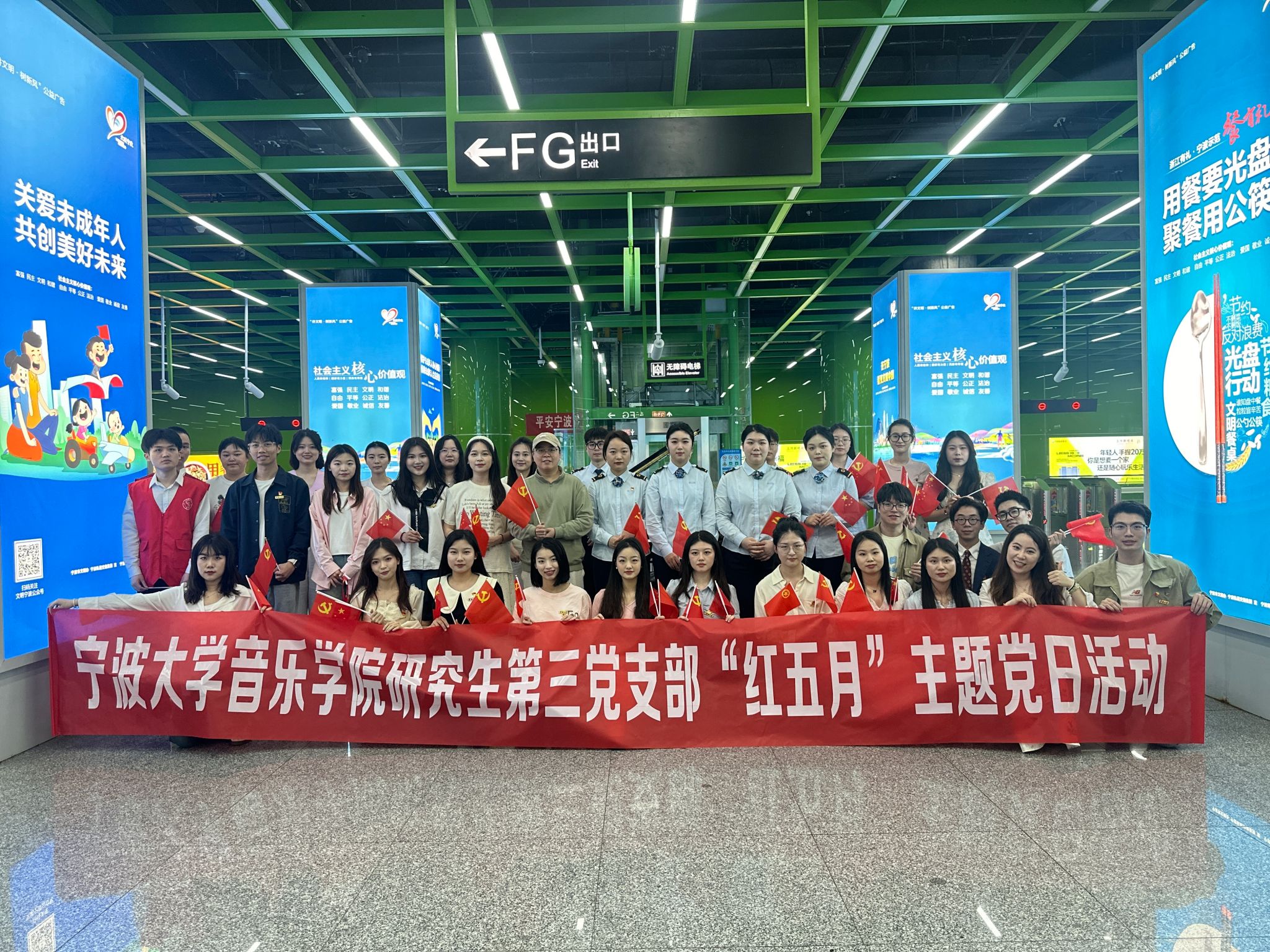 研究生第三党支部努力响应号召,与学院22级研究生团支部合作,于2024年5月18日中午11点20分,在宁波市儿童公园地铁站成功举办了主题为“红五月传唱红色,展现青春”的快闪音乐活动,该活动吸引了众多路人的关注和参与。