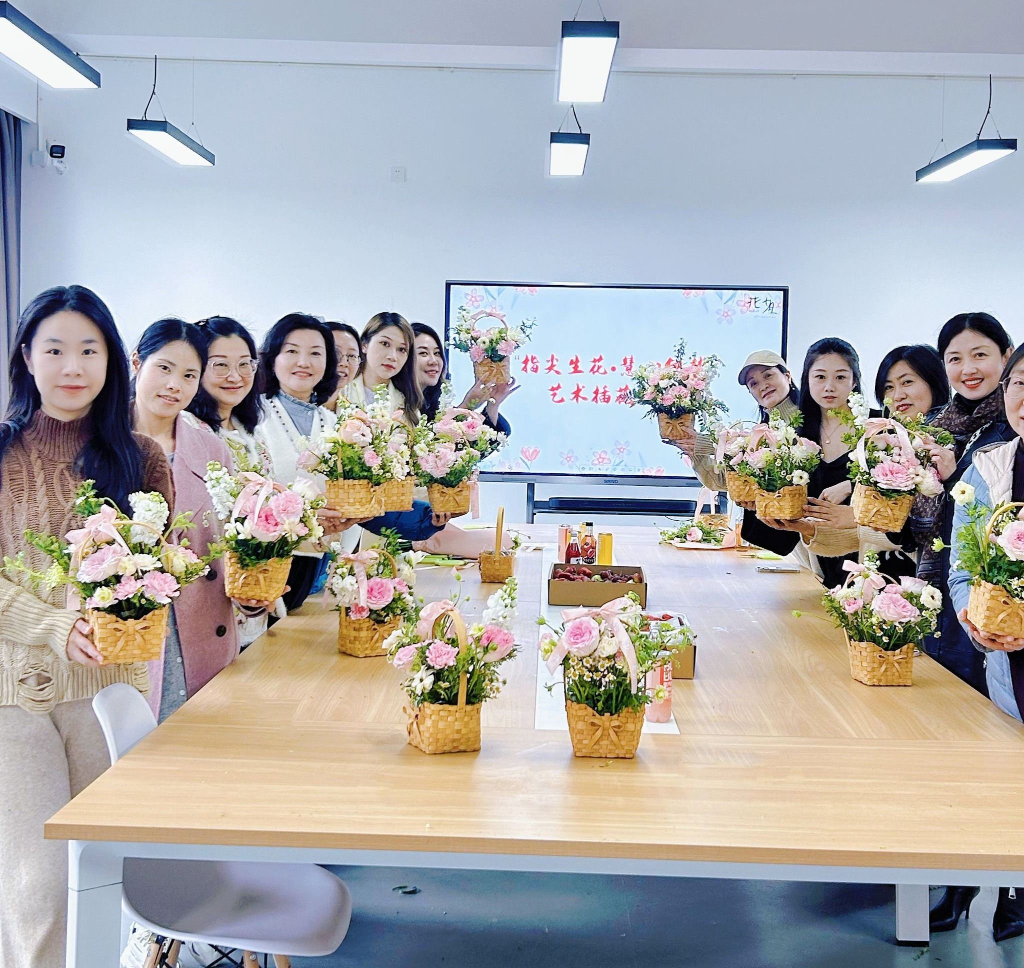 分工会在逸夫楼333室举办艺术插花活动。98堂