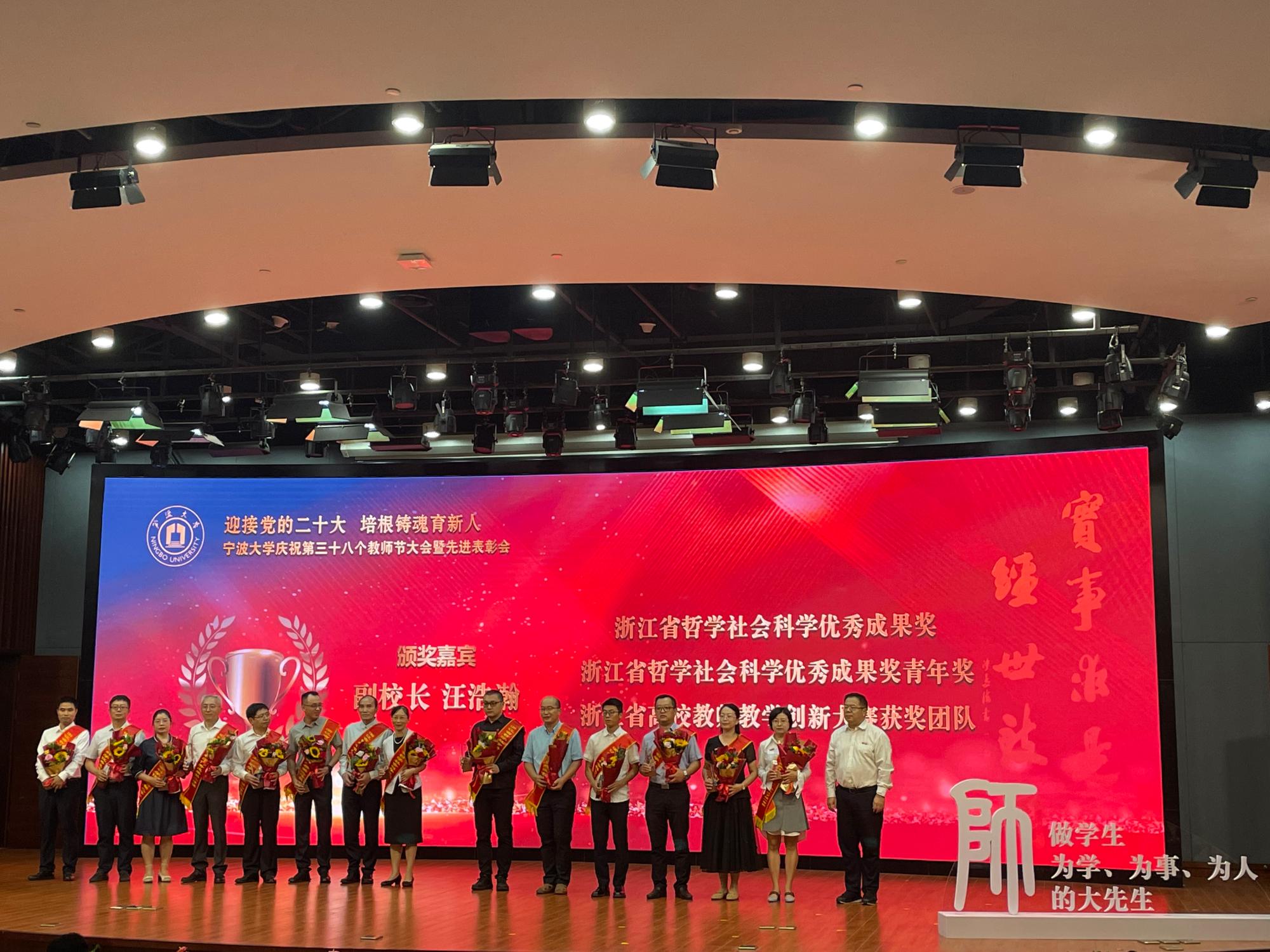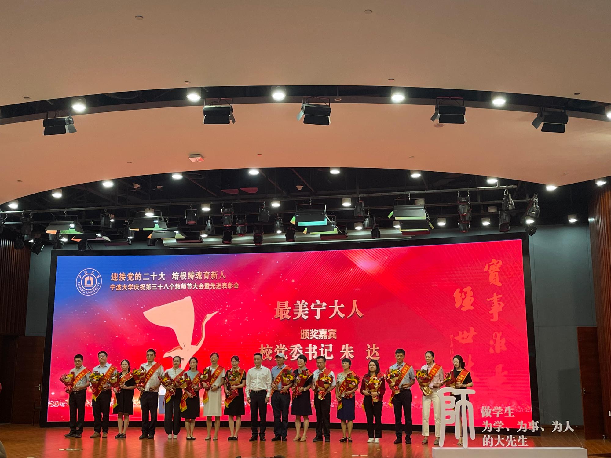 9月9日上午,在“迎接党的二十大 培根铸魂育新人”——宁大庆祝第三十八个教师节大会暨先进表彰会上,98堂