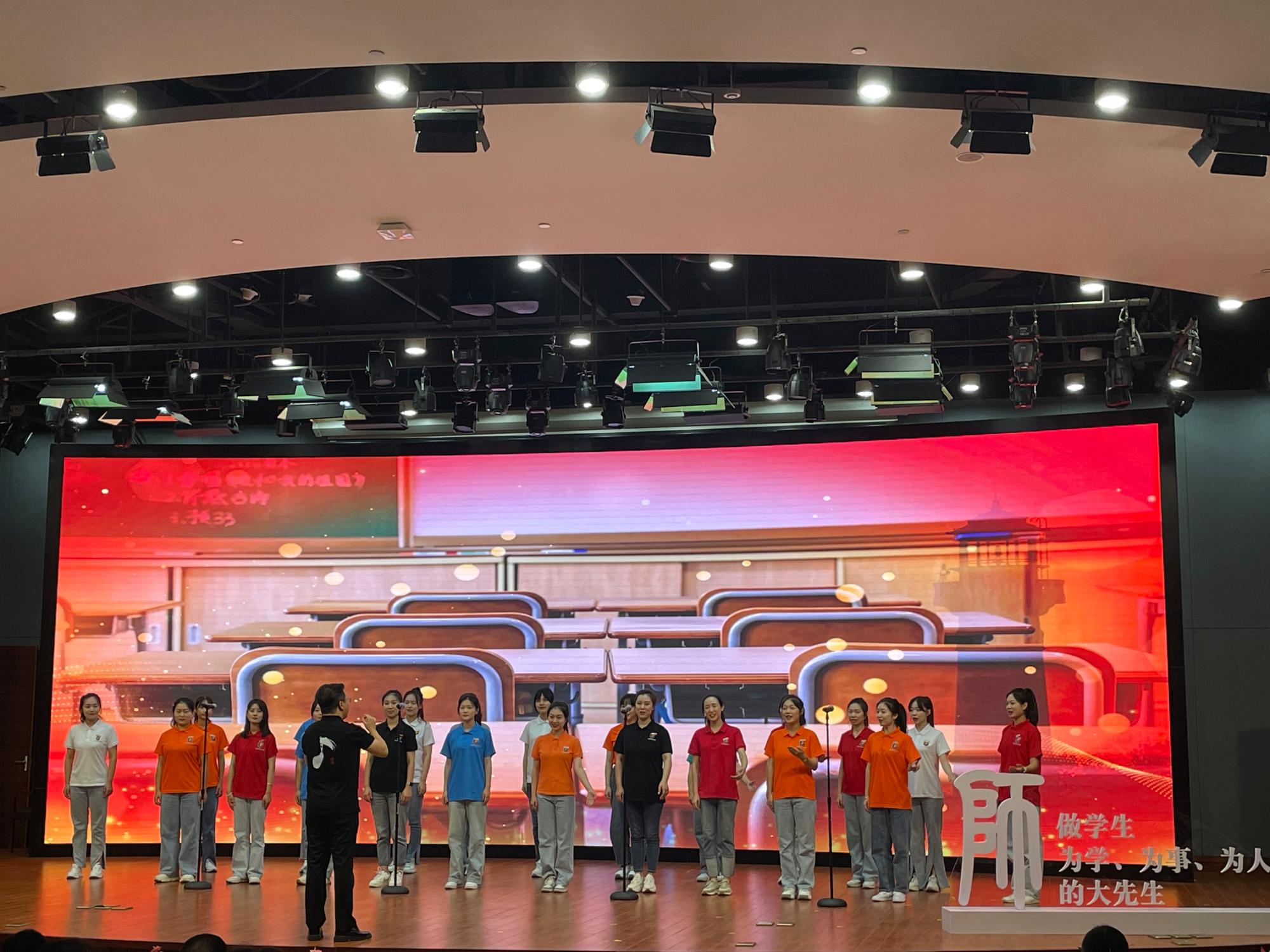 教师刘子彧原创歌曲《一首最美的歌》中结束。歌曲由教师林艳艳、何佩伦领唱,98堂