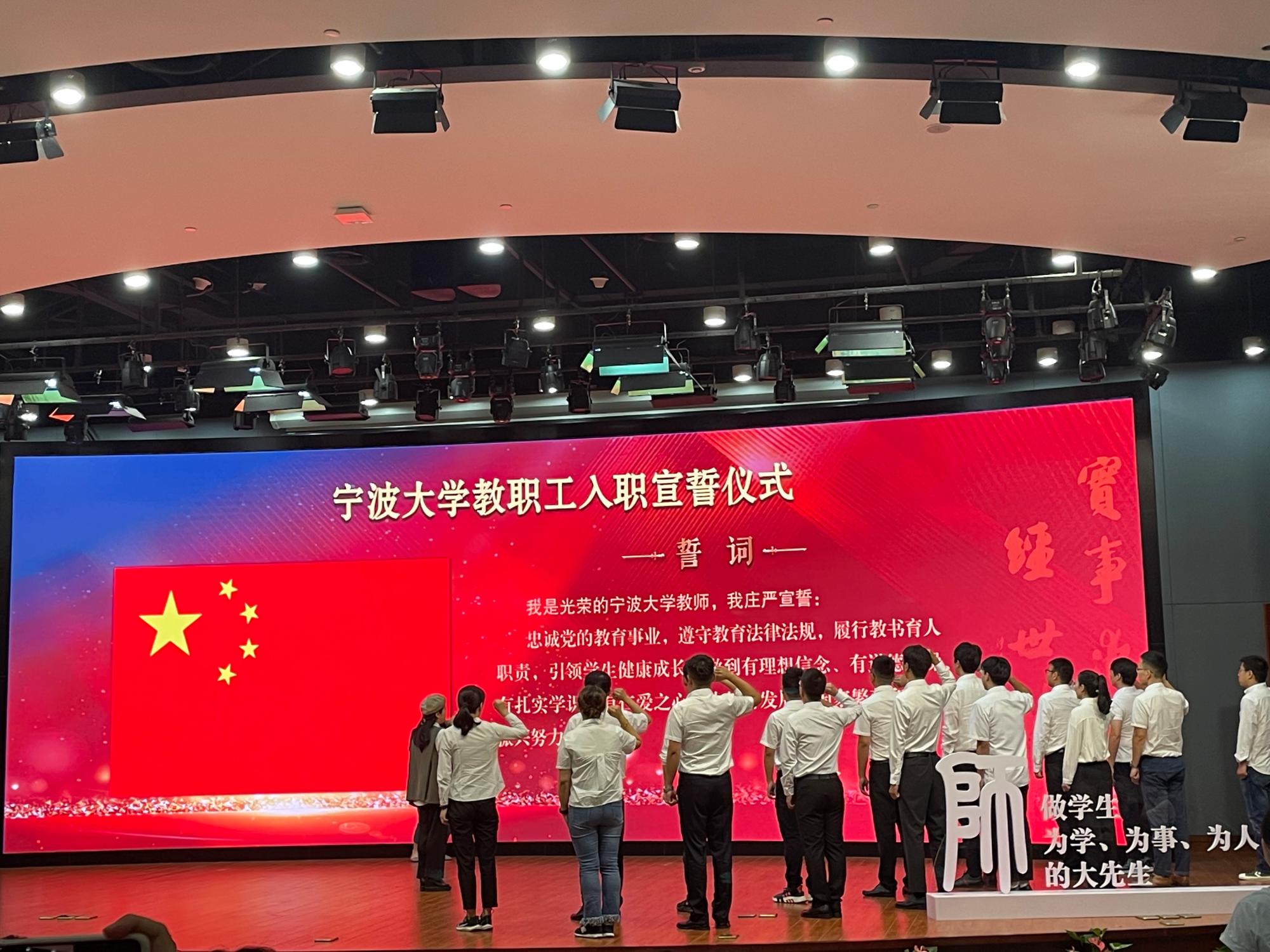 教师王蕾领誓,带领全校2022年新入职教职工代表进行宣誓仪式。引领新教师在从教生涯中,努力做到忠诚党的教育,遵守教育法律法规,履行教书育人职责,引领学生健康成长,做到有理想信念、有道德情操、有扎实学识、有仁爱之心,为教育发展、国家繁荣何民族振兴努力奋斗。